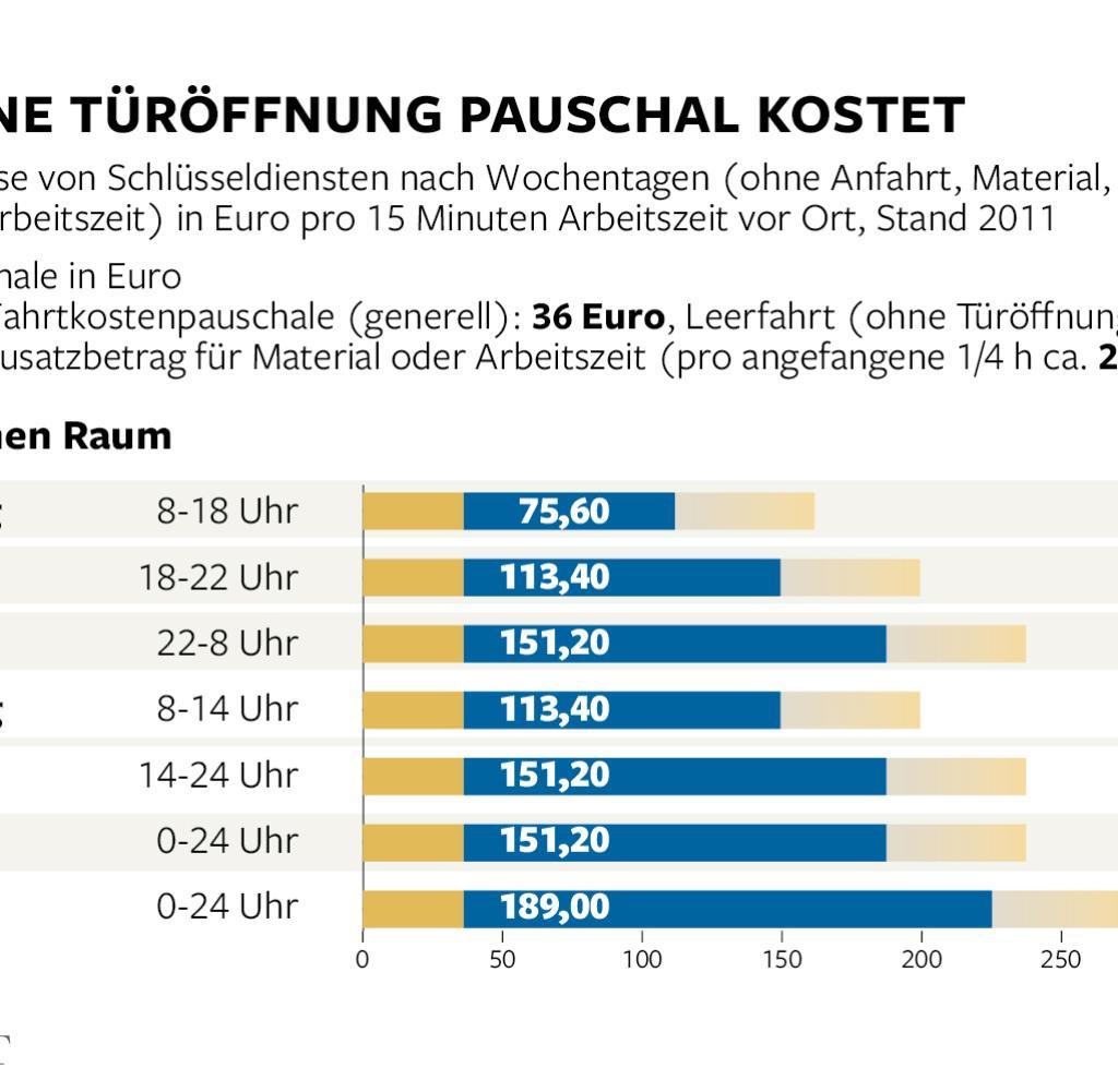 어느 업체의 2011년 기준 문 따주는 시간별 가격,출장비는 받지 않는 다는 광고가 출장비가 포함 되는 경우가 많다는것을 반증 한다.못해도 100유로 이상 든다.