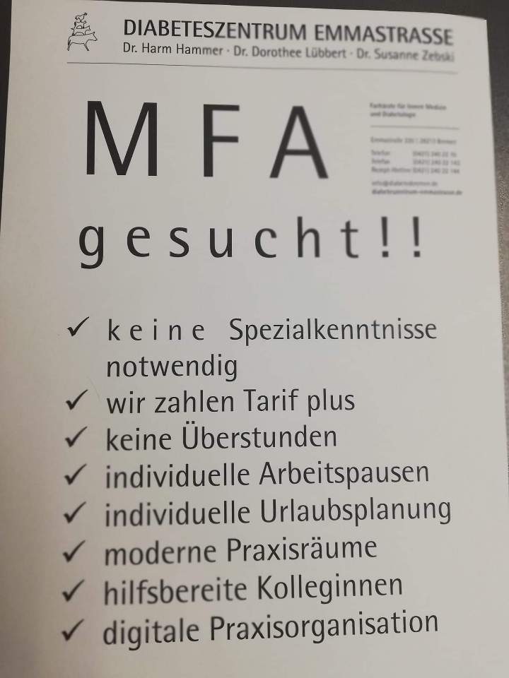 독일의 당뇨 전문 병원의 MFA 구인광고