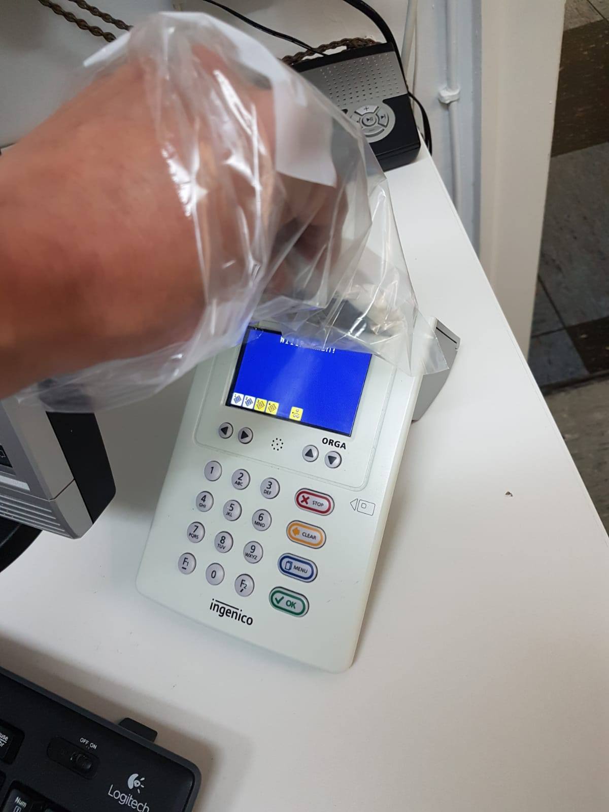 독일병원 에서는 진료비를 내지 않고 의료보험 카드를 기계에 긁는다 신용카드 긁듯이,그러면 컴퓨터 안에 환자 진료 기록 칸 안에 초록색 불이 켜진다.감염우려로 일회용 비닐 사용중..
