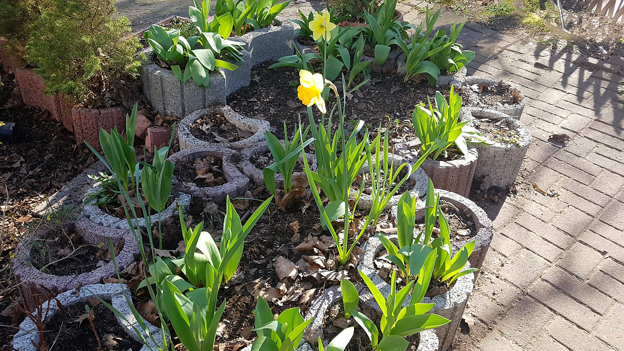 그리고 몇 년 전 친정엄마가 오셨을 때 만들어 주고 가신 엄마의 꽃밭에도 하나 둘 꽃이 피어난다
