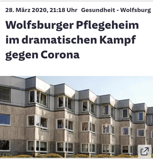 사진 출처 www.süddeutsche.de 볼프스부르크 요양원의 드라마틱한 코로나 사태에 관한 기사 캡처