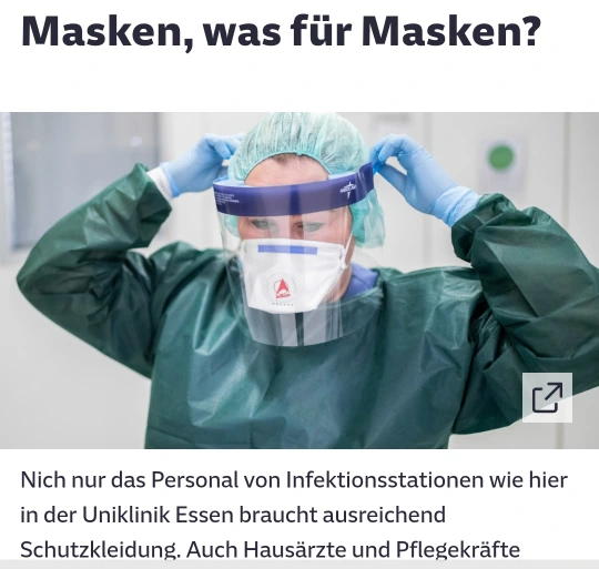 왼쪽사진 출처www. Süddeutsche.de 에쎈대학병원의료진이 일선 병원,가정의 병원, 전문간병인 방호복,방호마스크가 부족하다는 인터뷰,남편의 완전 무장 보다 훨나아 보임.