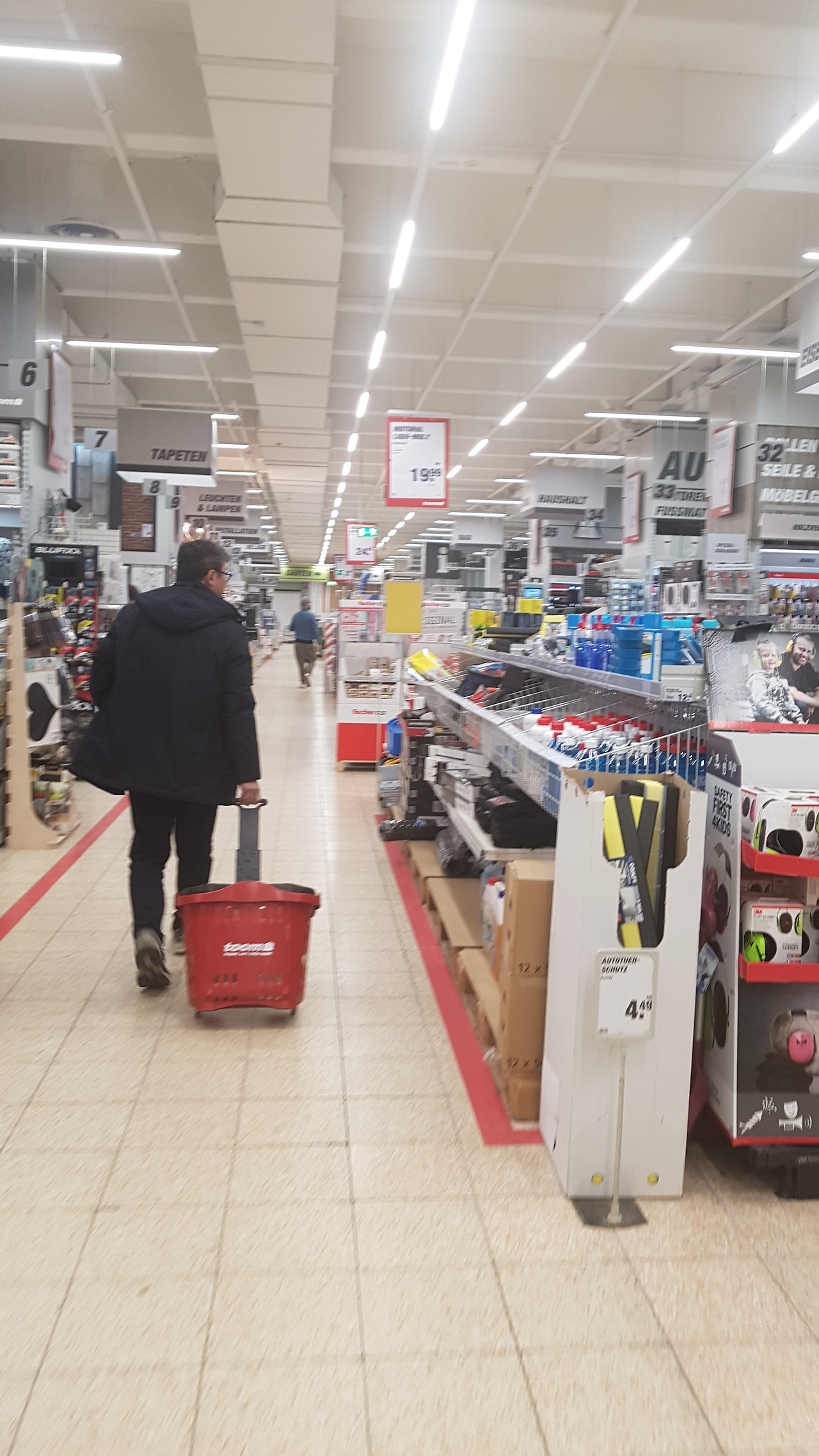 바우마크트라 하면, 평상시에도 인건비 비싸고 기술자님들 모셔 오기가 하늘에 별 따기 일 때가 많은 독일에서 크고 작은 집수리 정도? 는 가뿐히 스스로 하는 사람들이 많다. 그래서 작은 못부터 창문, 문, 욕조까지 집과 건물 건축에 사용되는 자재들이 거의 없는 게 없이 구비되어 있는 대형 상점이다.