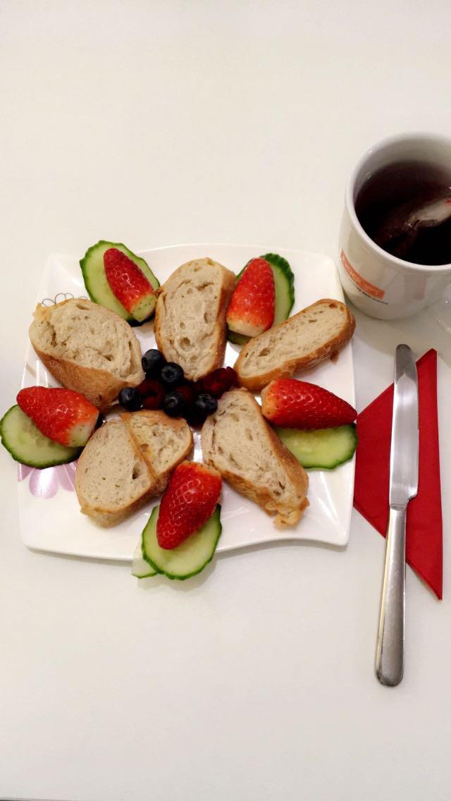 그래서 아침은 오래 저장할 수 있는 곡식 빵 또는 토스트 그도 지겨우면 오븐에 살짝 굽기만 하면 되는 저장용 바게트 구워 그위에 그때마다 아보카도 가 되었던 오이가 되었던 집에 있는 채소 얹어서 크림치즈던 땅콩버터던 발라서 간단하게 먹는다.