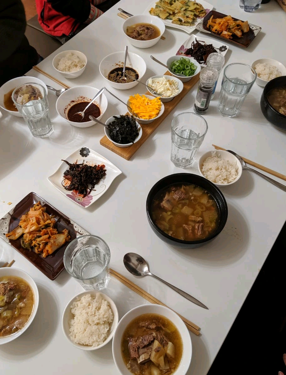 그전에 저녁은...가족들이 모두 모이기 때문에 주로 한식으로 상을 차렸고 당연히 반찬들도 몇 가지 만들어서 먹고는 했는데.... 이제는 저녁도 무조건 일품요리다. 기왕이면 점심에 먹은 메뉴와 겹치지 않게 비슷한 식재료로... 가령 점심에 만두를 쪄먹었거나 구워 먹었다면 저녁은 만둣국, 또는 점심에 샐러드 종류를 먹었다면 저녁은 그 남은 식재료로 비빔밥, 그리고 점심에 해물 파스타를 먹었다면 저녁은 해물탕.