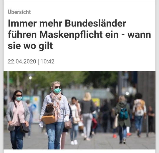 그 덕분에 독일 정부에서도 마스크 착용을 강력히 권장했으며 이제는 공공장소에서 마스크 쓰는 것을 의무화시킨 주들이 속속 늘어나고 있다.