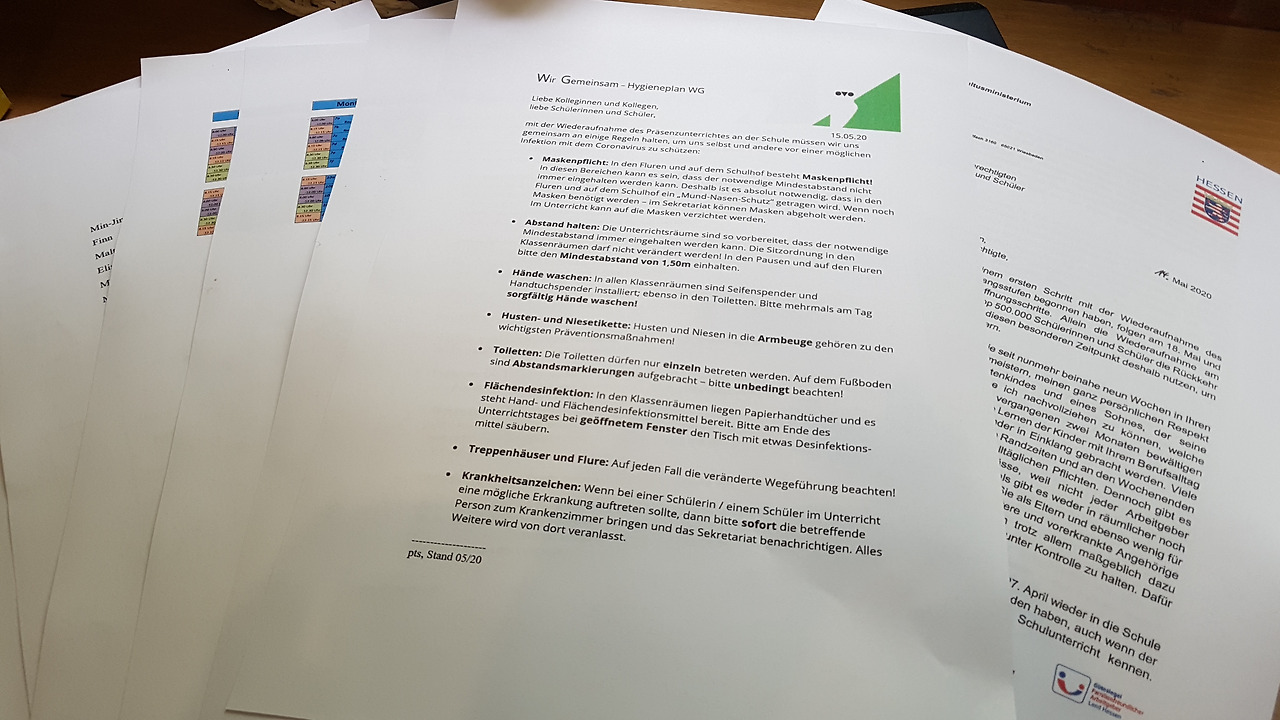 그래서, 헤센주에 속해 있는 막내의 학교 같은 경우 이번 주 월요일 에는 7학년 10학년, 화요일 에는 5학년 8학년 그리고 수요일은 6학년과 9학년이 등교하는 것으로 나누었다. 입시를 준비하고 있는 12학년은 선택과목에 따라 요일이 나뉘고 11학년은 목요일과 나머지 요일 중에 선택 과목으로 또 나뉜다.
