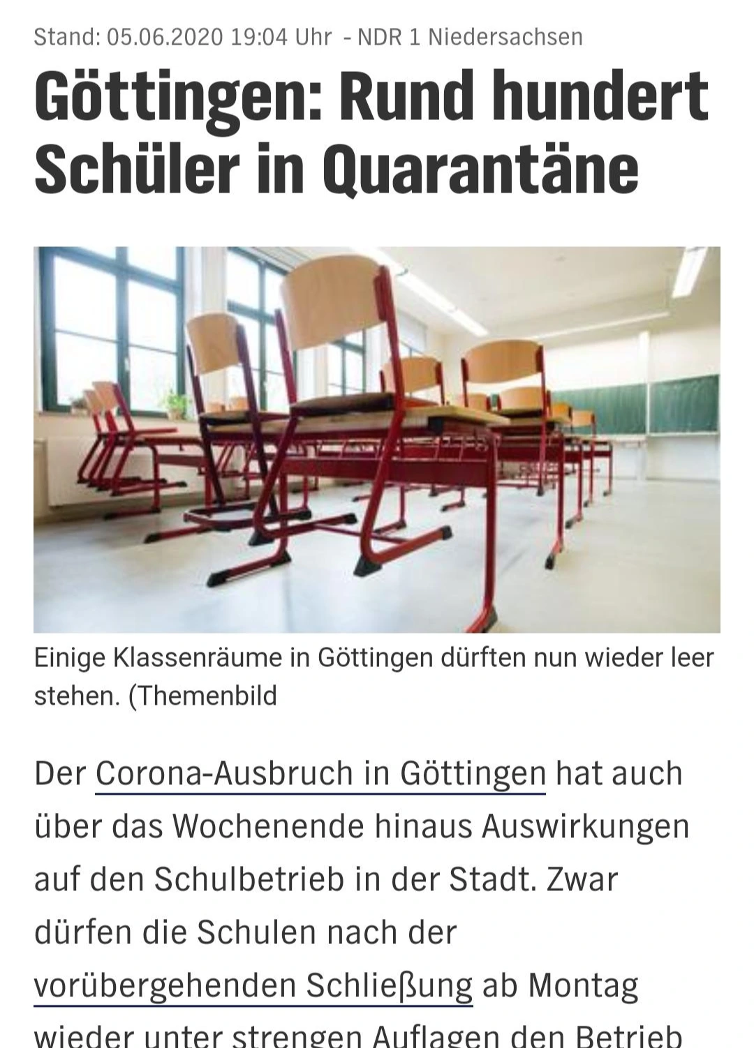 그런 괴팅엔의 우리가 너무나 잘 알고 있는 이두나라는 아파트에서 120명이 코로나 19로 확진되었다. 그중 39명이 학교 다니는 아이들 이였다. 그로 인해 다시 다니기 시작 한지 며칠 되지도 않은 학교들이 다시 휴교에 들어갔다. 게다가 그중에 코로나 확진된 아이들과 직접 접촉이 있었던 13개 학교 100 명의 아이들은 자가격리에 들어갔다.