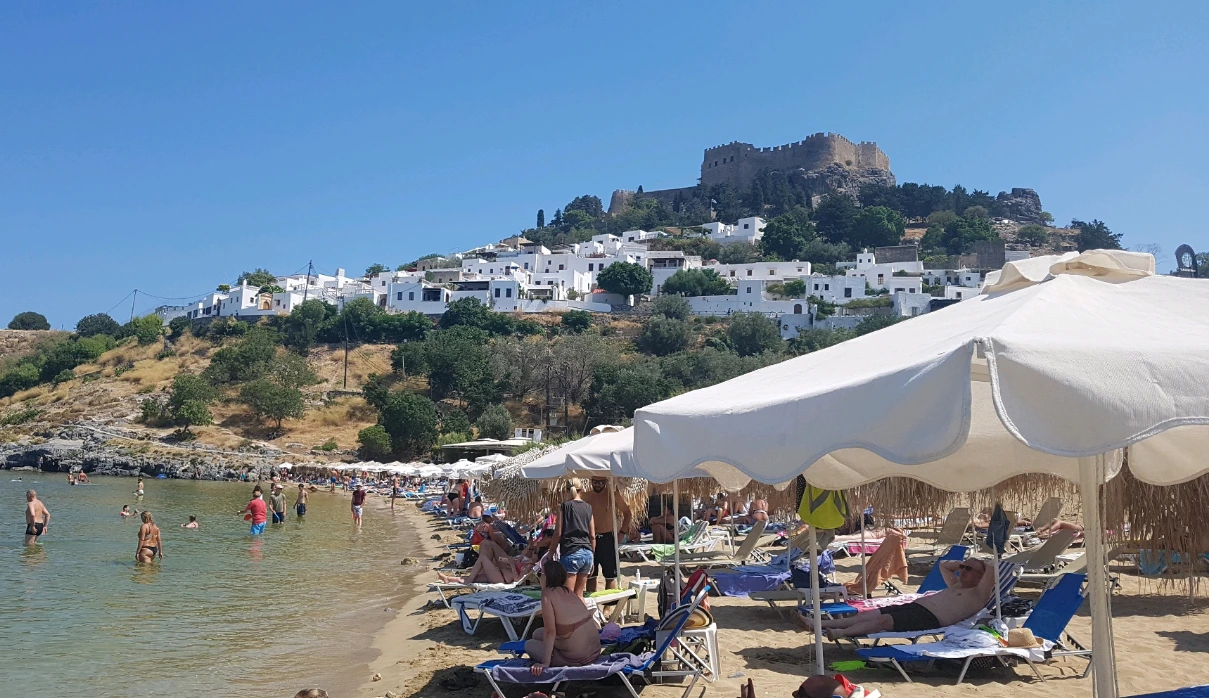 간단히 늦은 점심을 해결하고 그 예쁘다는 린도스의 해수욕장을 갔는데, 유명한 곳이여 그런지 신전에 올라 갈려다 너무 더워 이곳으로 직행 한 사람들인지... 바글바글 했다.