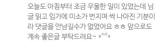 거기다 그런 부족한 글임에도 누군가에게는 미소를 머금게 해 주었다는 응원의 다정한 댓글들은 공모전에 떨어져서 자기도 모르게 흐믈흐믈 녹아버린 자존감을 세워 주고 위로가 되기에 충분하다.