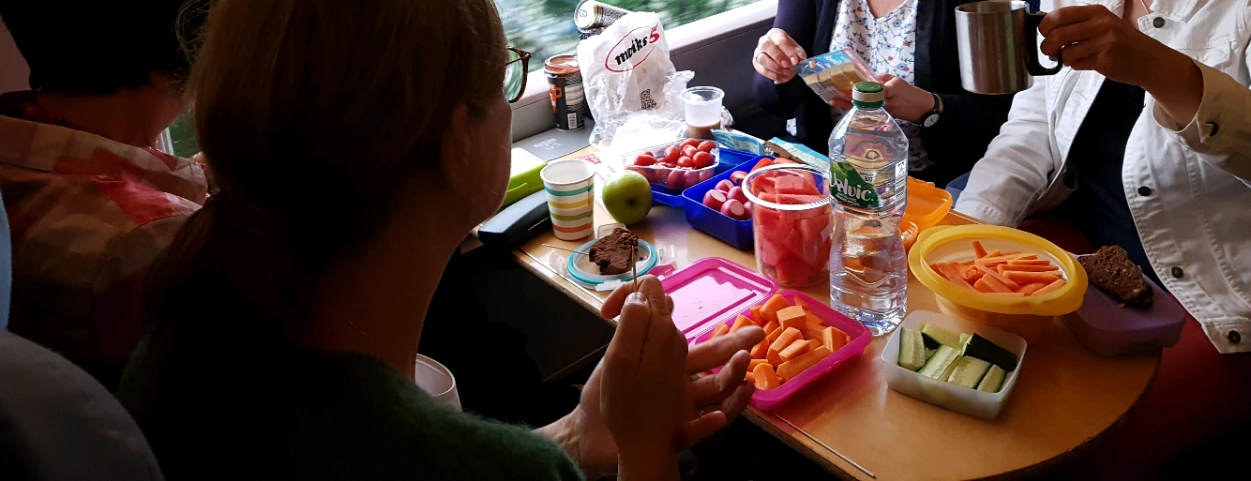 우테의 미리미리 예약 덕분에 우리는 모두 같은 칸에 수학여행 가는 여학생들처럼 조롱조롱 앉아 각자 가지고 온 아침 도시락을 펼쳐 놓고 나누어 먹으며 왁자지껄 하게 다섯 시간 넘는 기차 시간을 함께 보냈다.