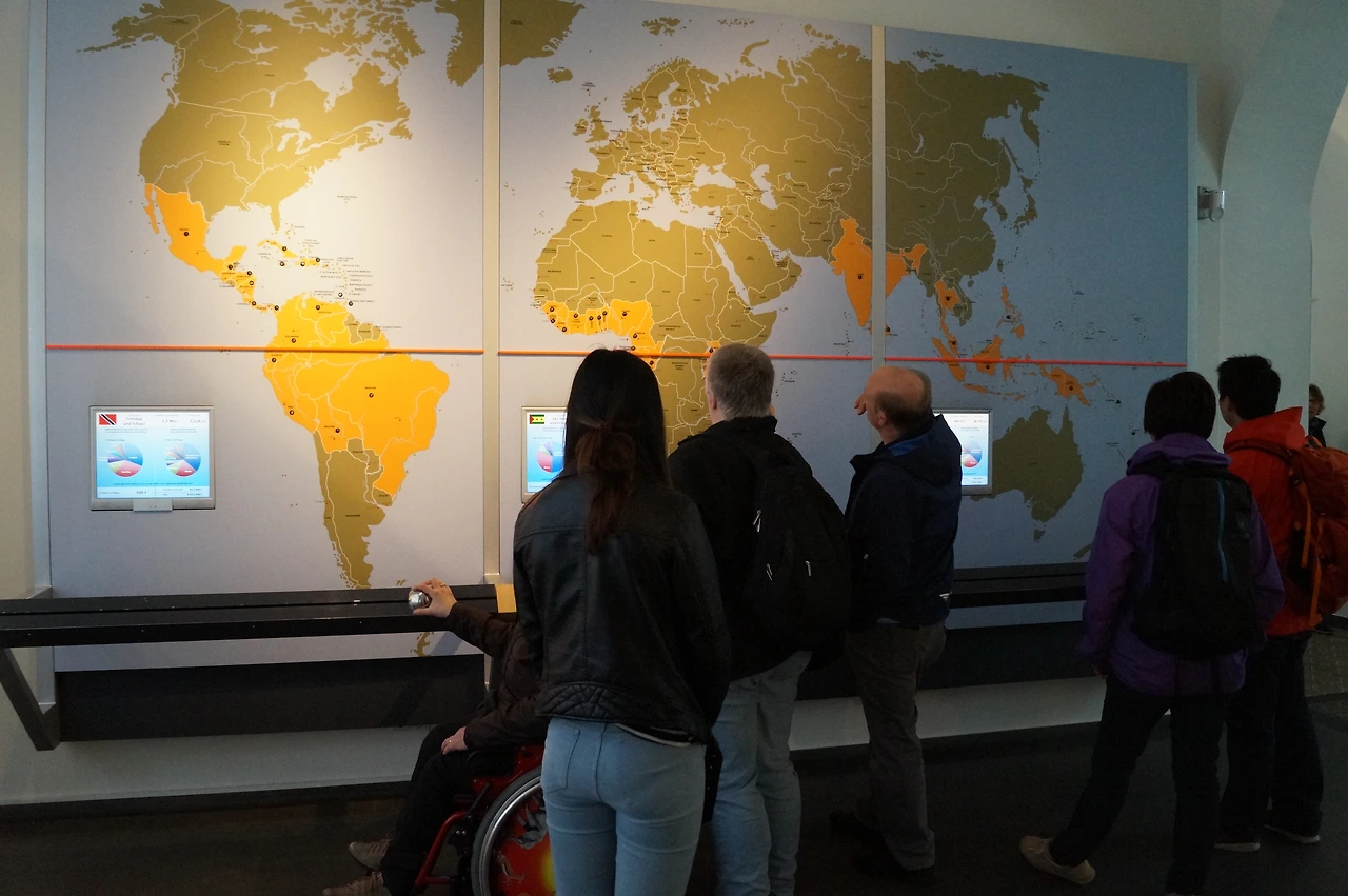 커다란 세계 지도에 자세히