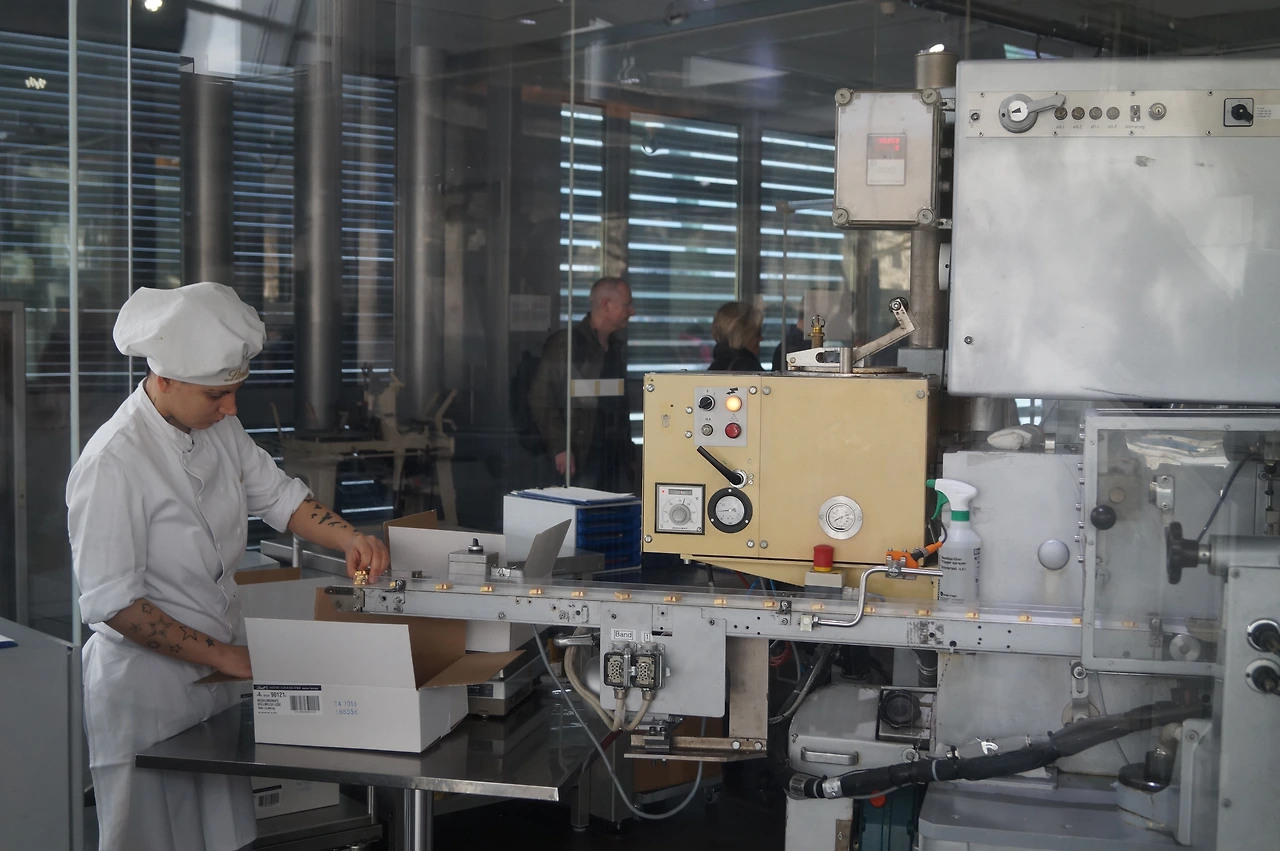 다 된 초콜릿을 박스에 담는 일이었다.