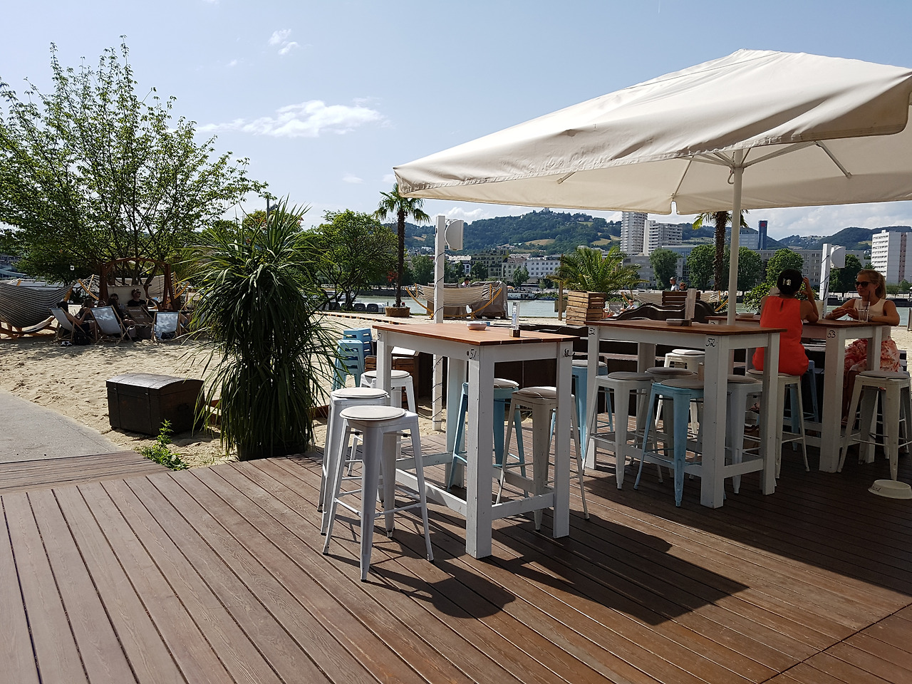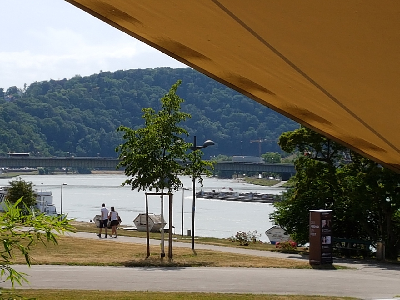 린츠의 도나우 강변 마라톤 전날 친구들과 커피 마시러 간 노천 카페, 그날도 가마솥 날씨
