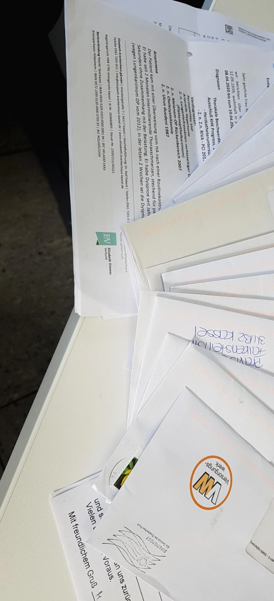 독일 가정의 병원에 매일 우편으로 오는 서류들로는 주로 환자들의 연금보험 회사, 의료보험 회사, 노동청 등 각 기관에서 원하는 환자에 관한 의사 소견서 등이다.