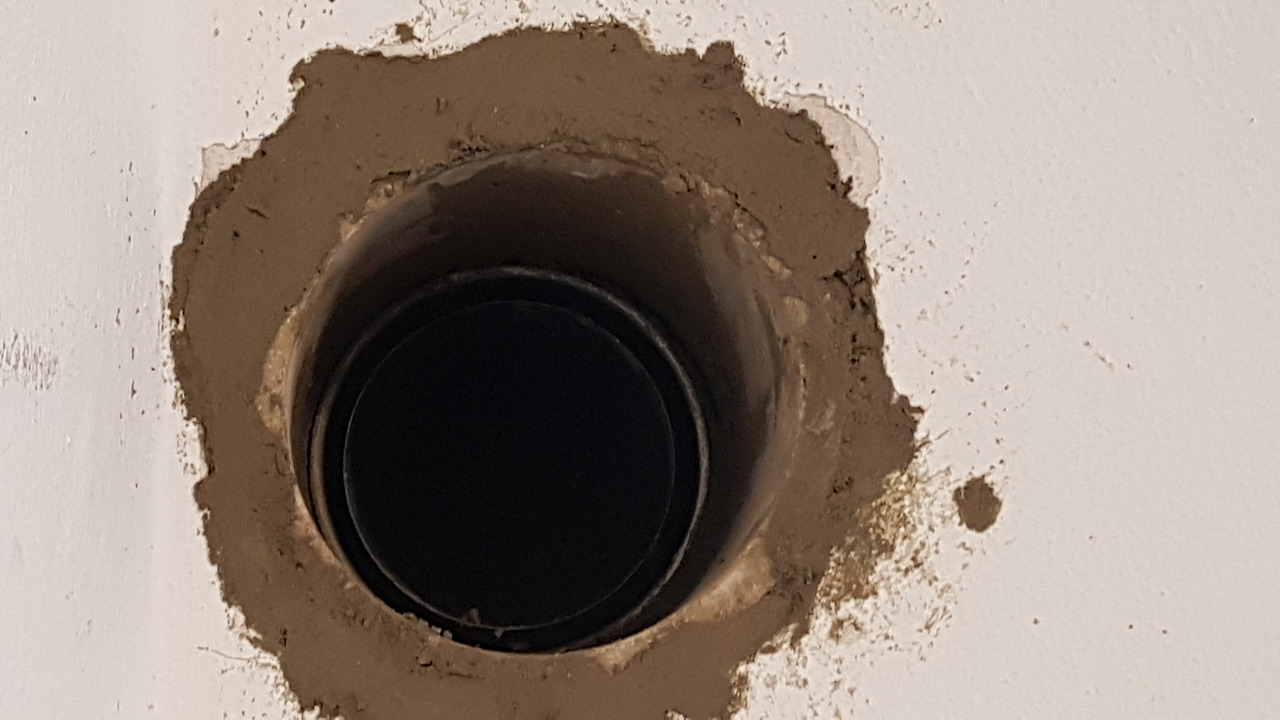 벽난로의 연통을 연결하려고 미리 뚫어 놓은 구멍
