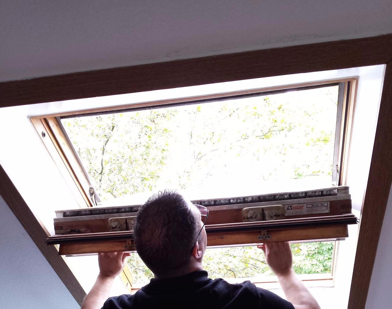 전형적인 독일 다락방 창문 위아래로 여닫이