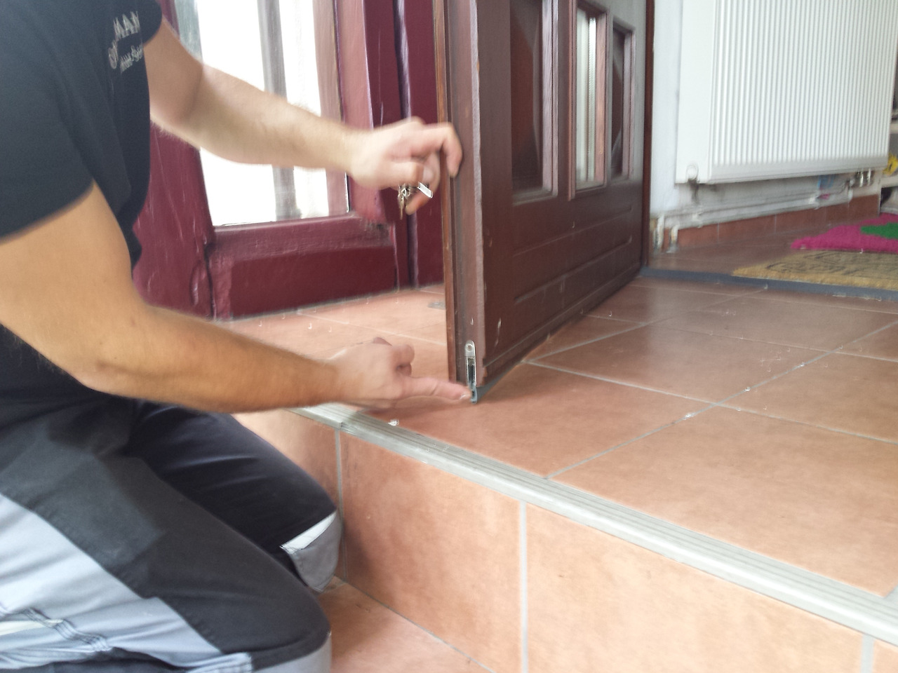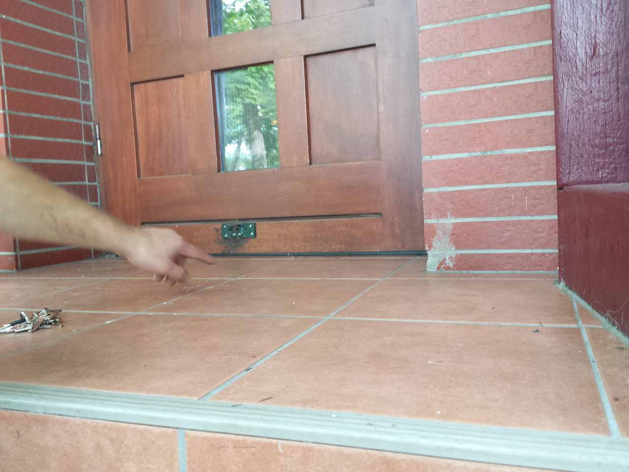 아저씨가 손가락으로 현관문 하단에 붙어 있는 작은 고리를 꾹 눌러 주고 문을 천천히 닫았더니