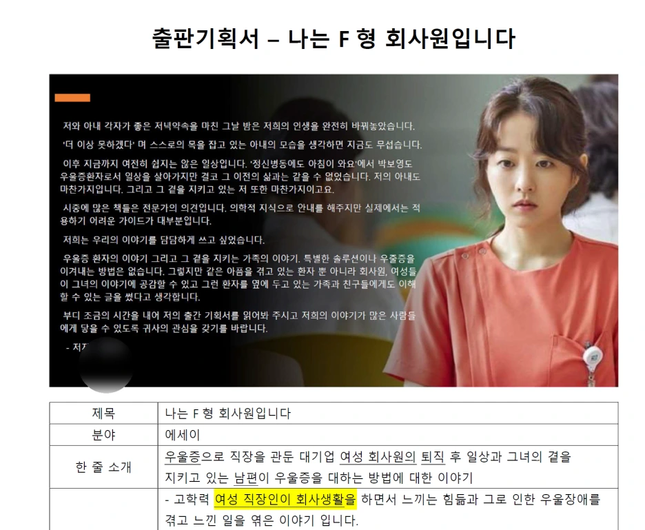 나는 F형 회사원입니다 원고 투고해 주셨던 ooo입니다.