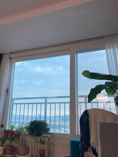 그래도 한 번 가보자며 방문한 집에 들어서니 저렇게 한강도 보이고 , 와 이 놀라운 일조량은 뭐지 하면서 잊혀지지 않는 아우라.
