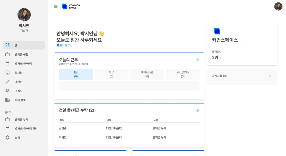 국내 기업 시프티에서 운영 중인 근태 관리 중점 B2B SaaS이다. 엄밀한 의미로 봤을 때 협업을 위한 도구는 아니지만, 인사팀의 입장에서 시프티 같은 SaaS는 있기 전과 후로 나뉠 수 있을 것으로 생각된다. 기존의 출근 퇴근 기록을 자율적으로 운영해 왔거나 기타 플랫폼이 없는 상황이었다면 이러한 근태 관리 SaaS가 주는 편리성은 무시할 수 없을 것이다. 기업에서 사용해 본 경험이 있는 후기에 따르면 근태뿐만 아니라 휴가, 급여 관련 기능에 초점이 강하게 맞춰져 있어 자주 들여다보는 편은 아니지만, 기록 앱으로서는 잘 사용 중인 것으로 전해 들었다.