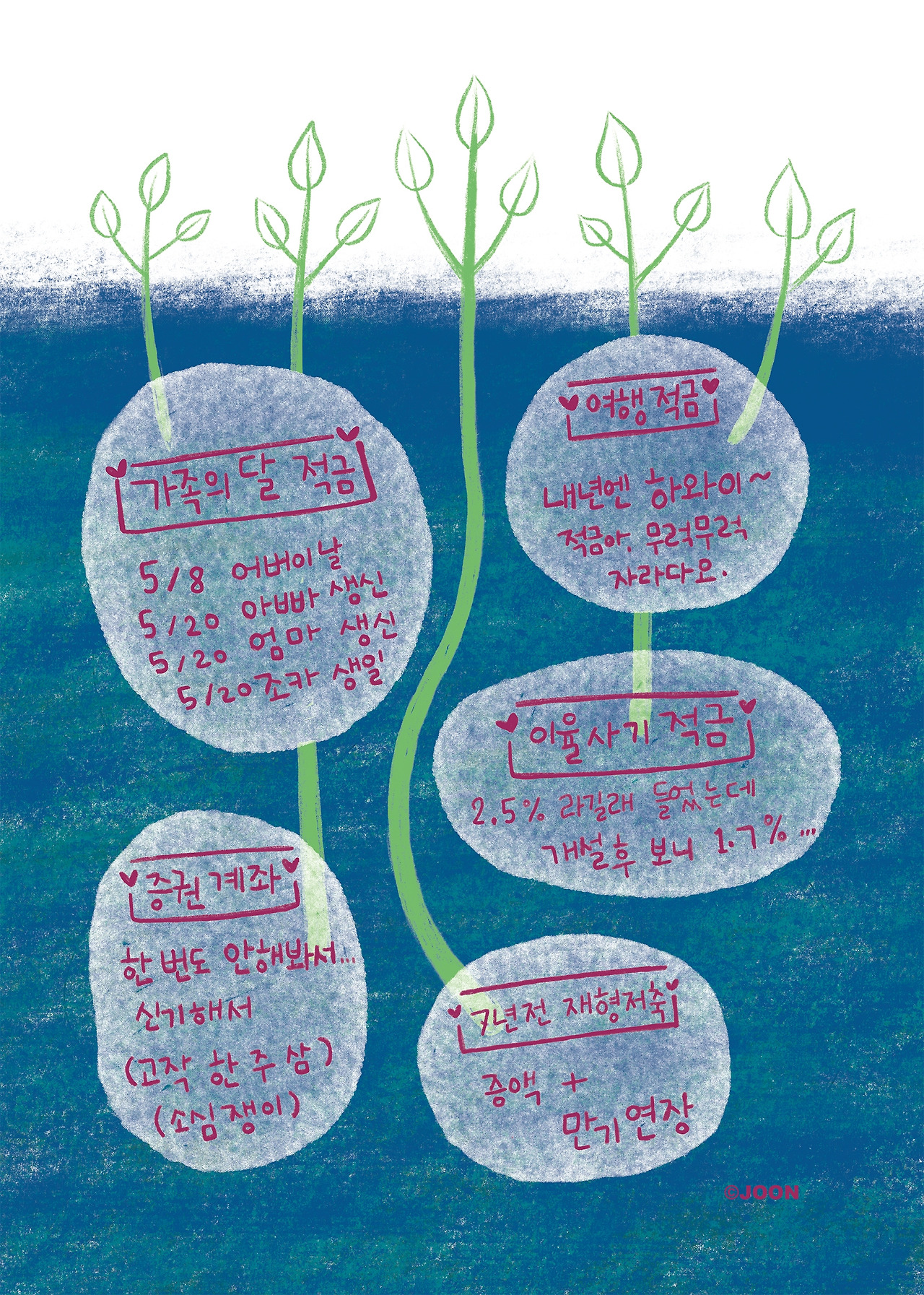 요새 부쩍 충동적으로 돈을 지출하고 있다. 다름 아닌 각종 금융상품에 말이다. 엄밀히 말하면 지출이 아니라 미래를 위한 투자이지만 이로 인해 당장의 생활비가 줄어들기 때문에 지출로 잡는 것이 맞을 것이다. 올해가 겨우 두 달 지났는데 새로 개설한 적금 계좌만 다섯 개다. 누가 들으면 내가 큰돈 버는 사람인 줄 오해하겠지만 전혀 아니다. 오만 원짜리 적금 몇 개, 십만 원짜리 적금 몇 개가 전부이다. 요새는 비대면 계좌를 개설하기가 정말 쉬워서 굳이 은행을 가지 않아도 금방 만들 수 있다. 적금을 들고 나면 괜스레 뿌듯해지고 곧 부자가 될 것 같은 기분이 들지만 자동이체일에 돈이 빠져나갈 때마다 약간의 후회가 스멀스멀 올라온다. 다행히 적금 기간이 그리 길지 않은 것들이라 잘 버틸 수 있기를 바랄 뿐이다. 뮤지컬 덕후여서 VIP석으로 똑같은 공연을 네 번씩 관람했던 과거의 나를 처절히 반성하며 참회하는 마음으로 향후 몇 년간은 경제 다이어트에 돌입하리라. 경제적 자유만이 진정한 자유임을 잊지 말자!