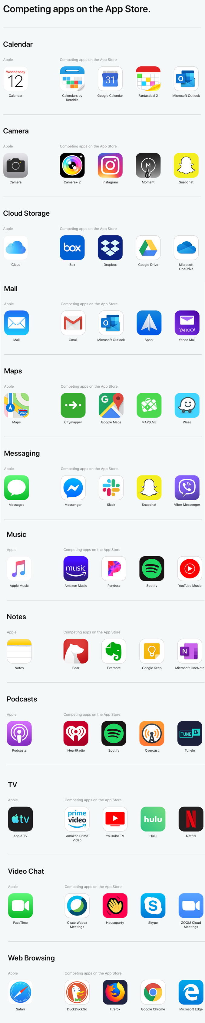 애플 자사 서비스와 경쟁하고 있는 앱을 명시해줌
