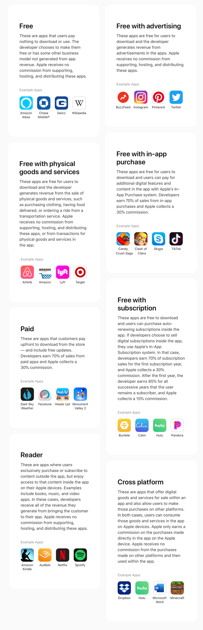 기본적으로 애플은 디지털 제품의 구입에 대해서는 애플의 결제시스템을 이용하는 게 기본 원칙이다.