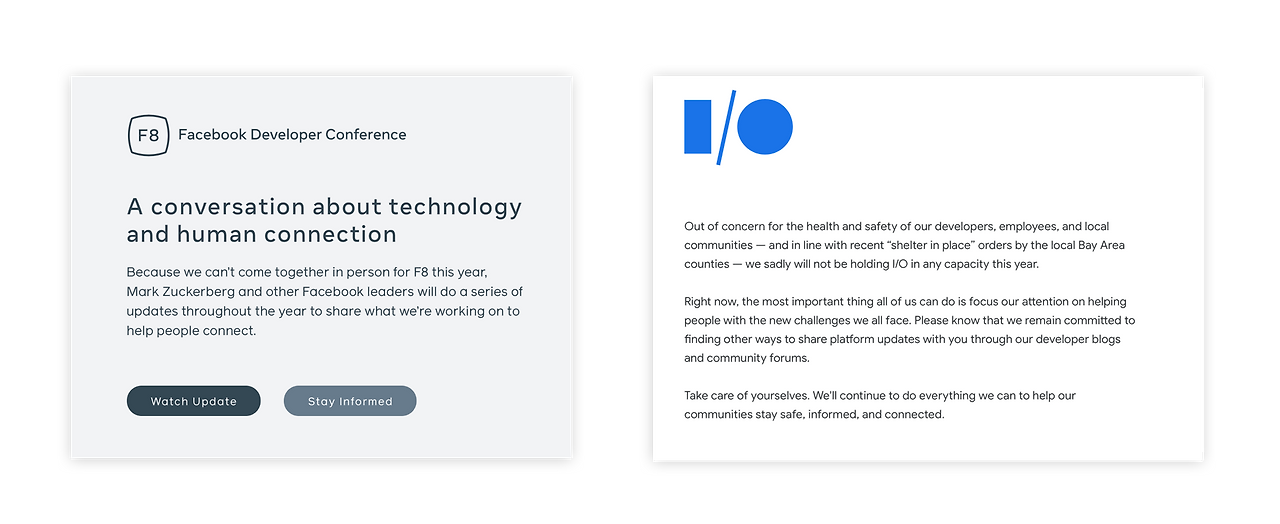 코로나로 사회적 거리두기 시행 후, 큰 테크 회사들은 올해 진행하려 했던 연말 행사인 개발자 행사를 연기 또는 취소했습니다.