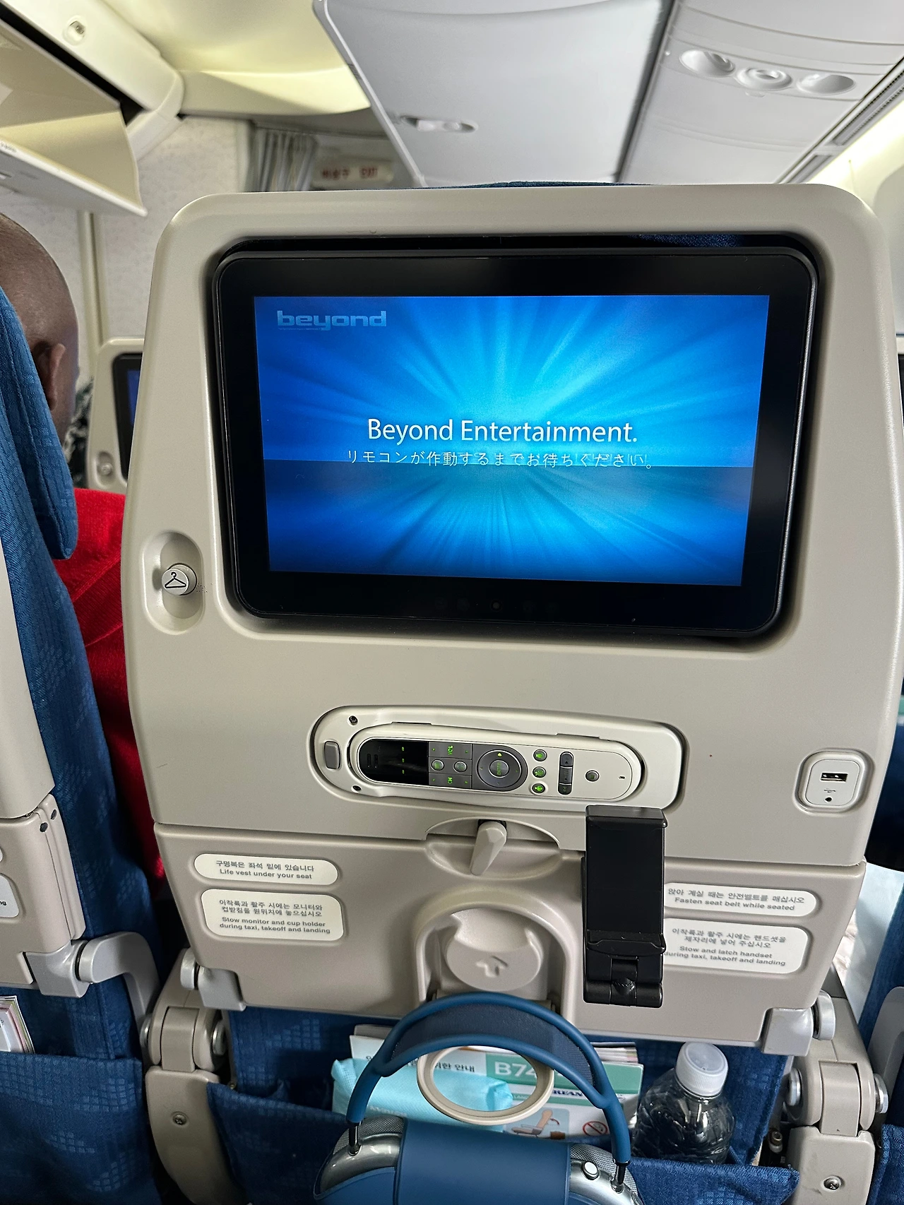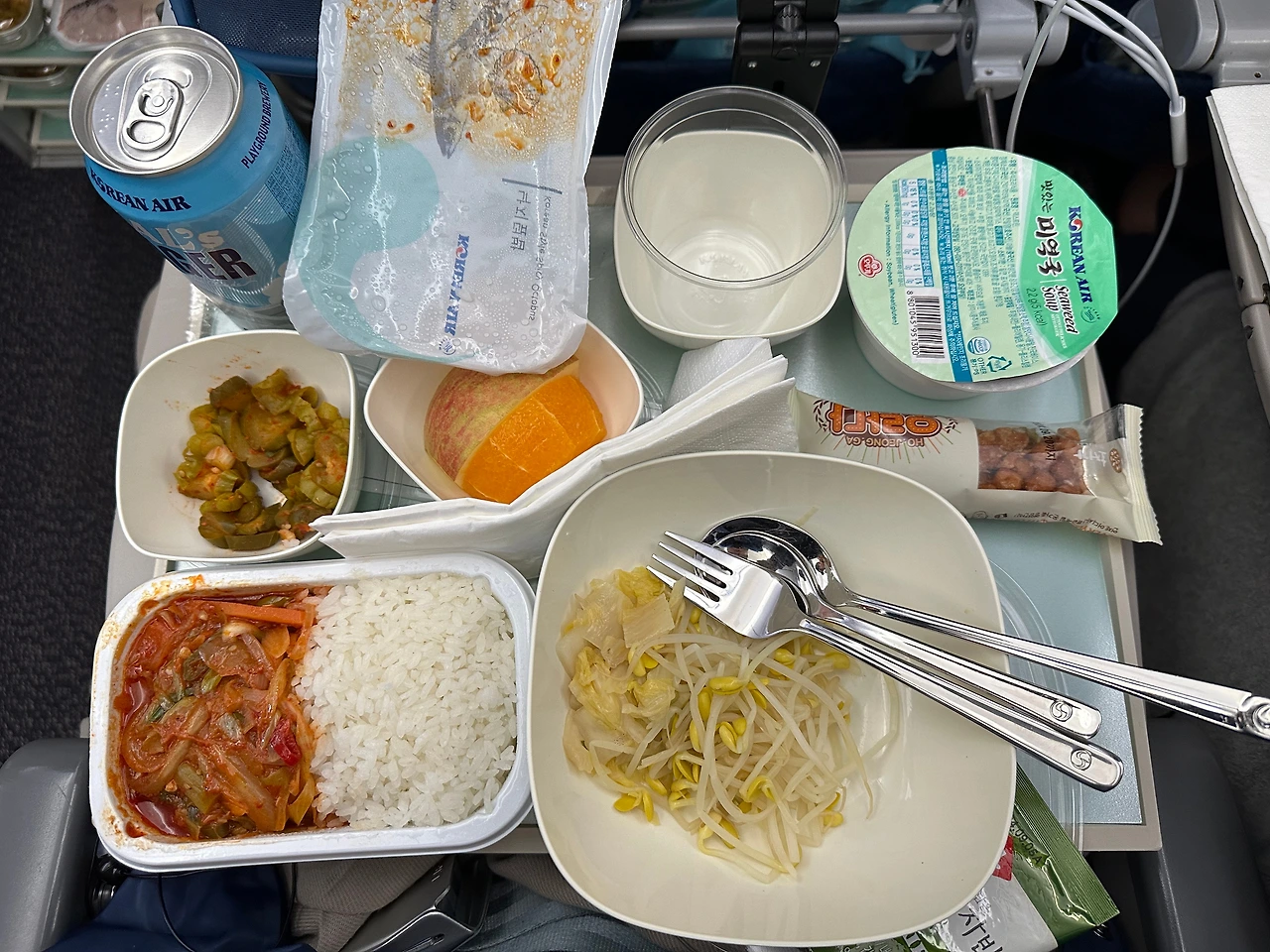 기내식을 총 3번 먹는 기나 긴 비행을 시작했습니다. 전자항공권에는 뉴욕으로 갈 때 14시간 20분, 돌아올 때 15시간 30분이 걸린다고 하더군요. 예전에 뉴욕에 출장 갔을 때는 12시간 정도 걸렸던 것 같은데 러시아 영공을 통과하는 북극항로가 러시아-우크라이나 전쟁 이후 막히면서 더 먼 거리를 돌아서 갑니다. (북극 방사선은 좀 덜 맞겠군요)