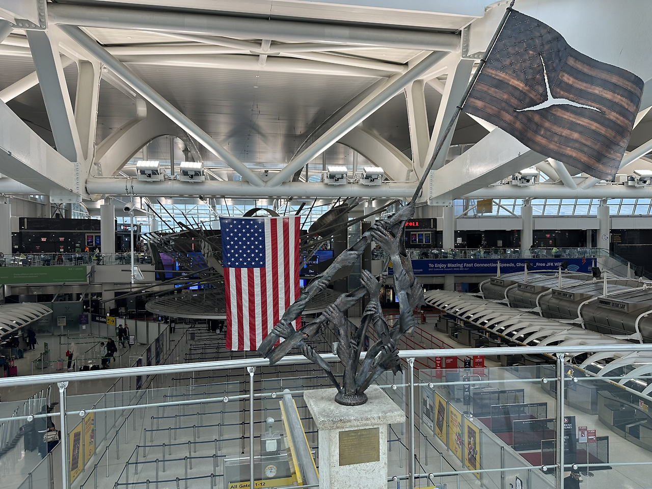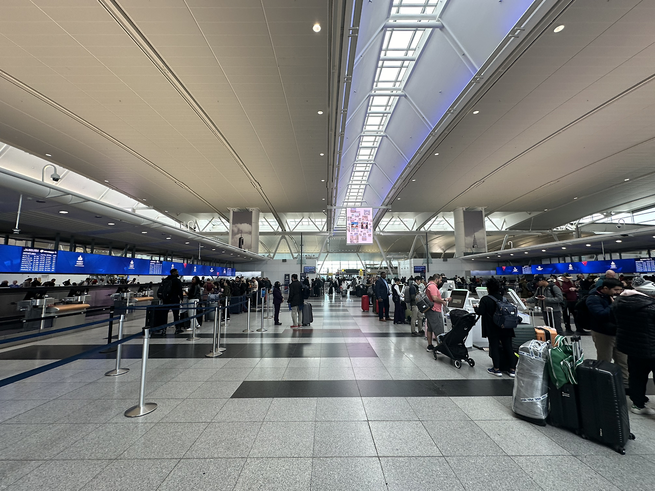 자그마치 13시간 20분의 비행 끝에 미국 뉴욕 JFK국제공항에 도착했습니다 8년 전 뉴욕에 왔을 때는 12시간 정도 걸렸던 것 같은데 북극항로를 이용하지 못해 더 길어졌습니다. 하지만 그때보다 이상하게 덜 지루하게 날아왔네요. 이것도 경험의 힘일까요.