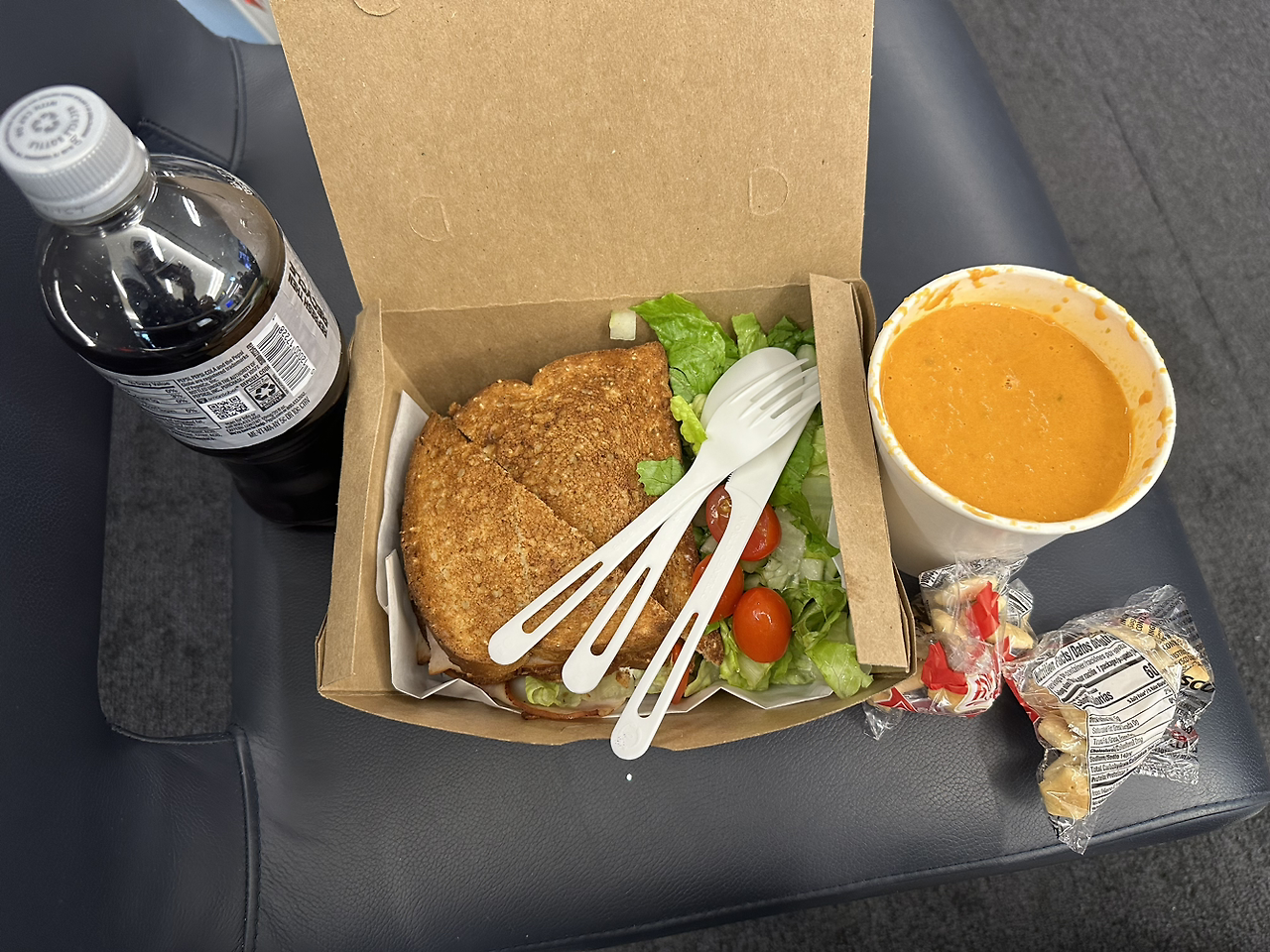 아침 기내식만 먹은 상태라 탑승구 근방 가게에서 샌드위치, 수프, 음료수를 주문하니 $39.16로 비쌌습니다.