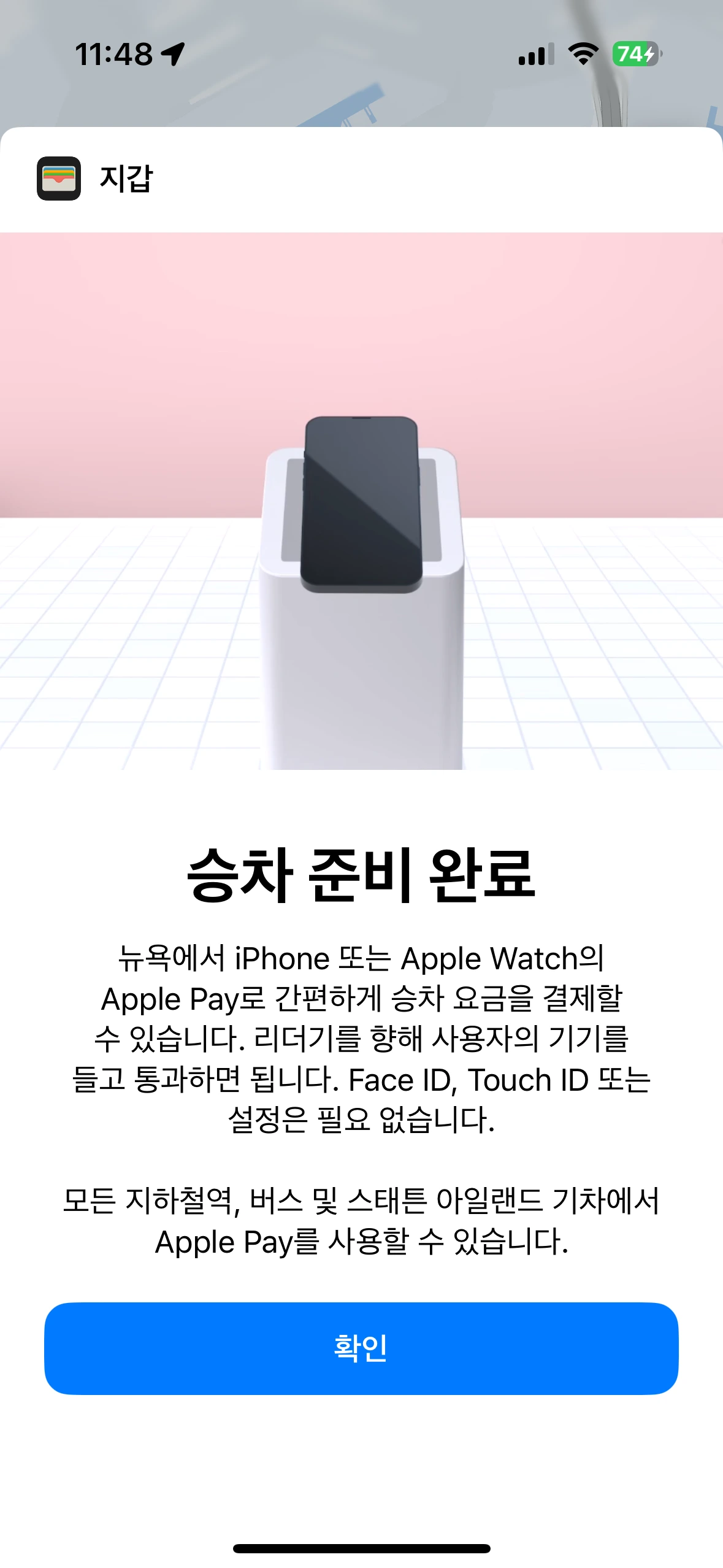 그리고 대중교통을 페이스아이디 필요 없이 아이폰만 갖다 대면 바로 이용할 수 있다고 뜨고 웬만한 가게에선 다 애플페이가 됩니다. 역시 미국이 애플의 본진인데 왜 정부의 미움을 받아서는...