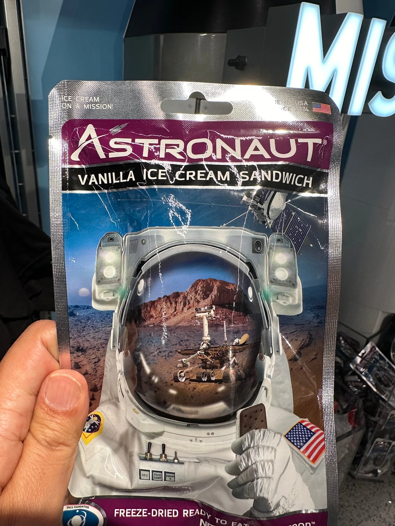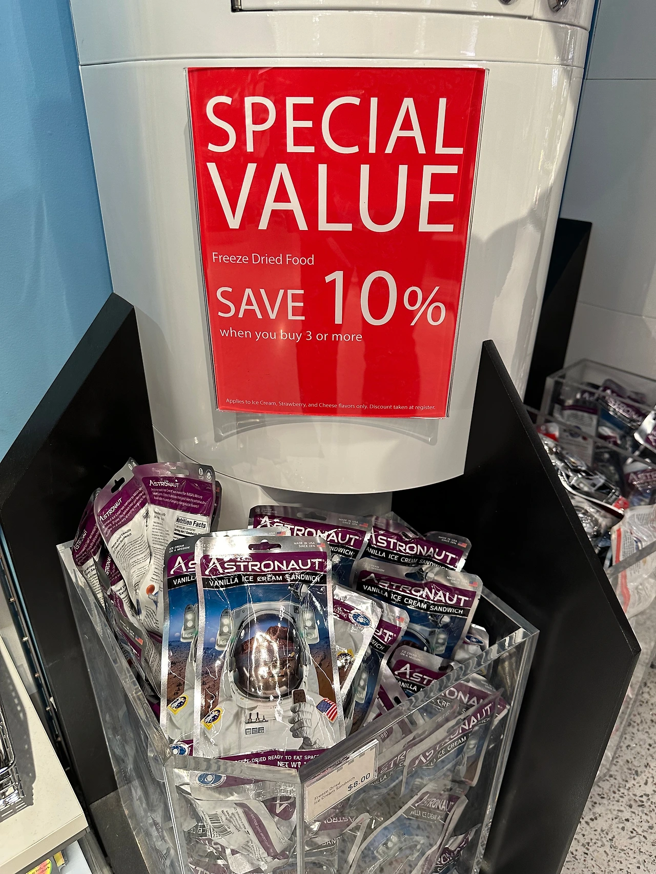 박물관 구경의 끝은 기념품점이죠. 우드바-헤이지 항공우주박물관에서 나사 로켓과학자라고 쓰여있는 티셔츠와 스미소니언 박물관 후드티 등을 구입했는데 다양한 기념품이 많았지만 우주인 아이스크림만 구매했습니다.