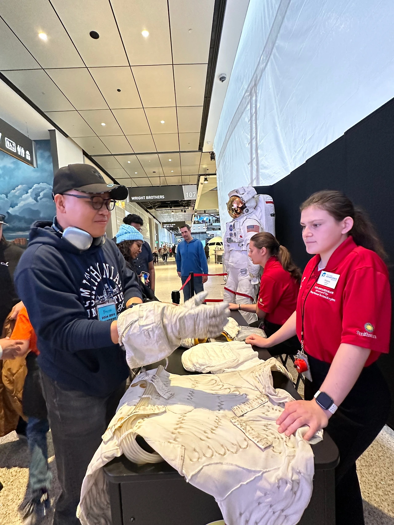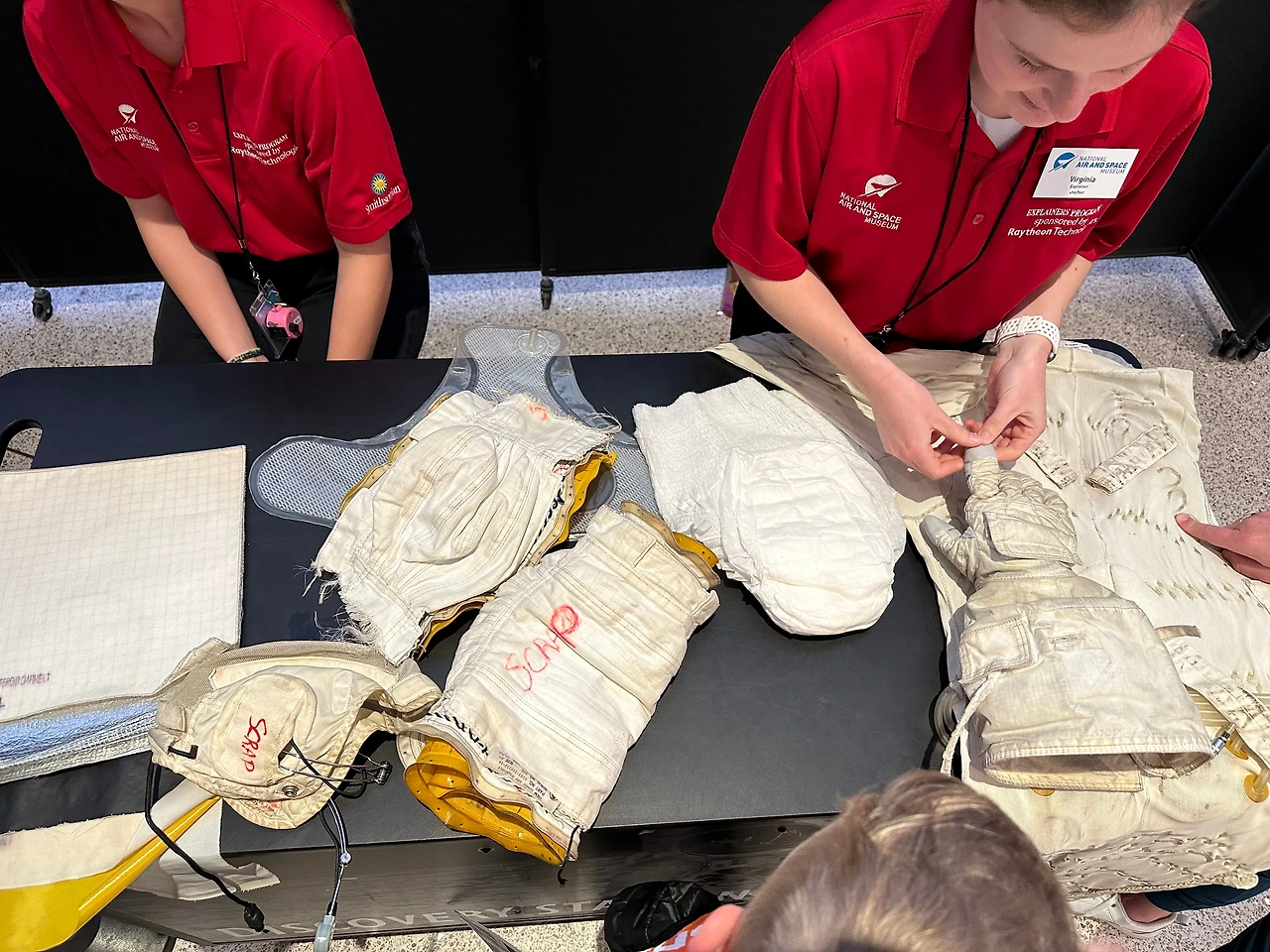 1층 로비엔 실제 사용했던 우주복의 일부를 만져보고 장갑도 껴볼 수 있었습니다.