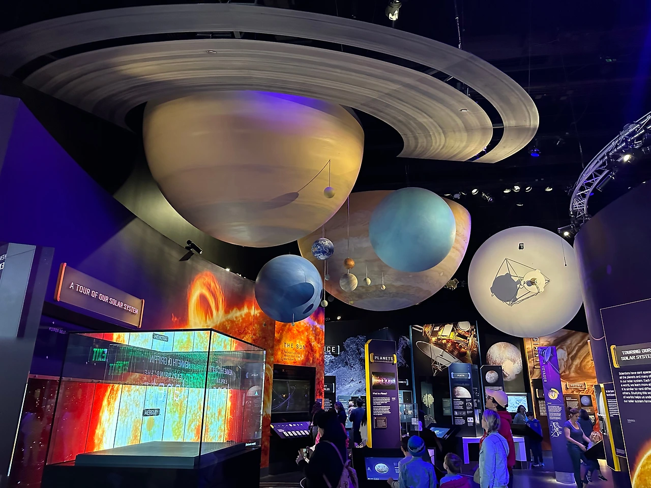 입구에 들어서면 태양계 행성들이 허공에 크기 비율에 맞춰 매달려 있습니다.