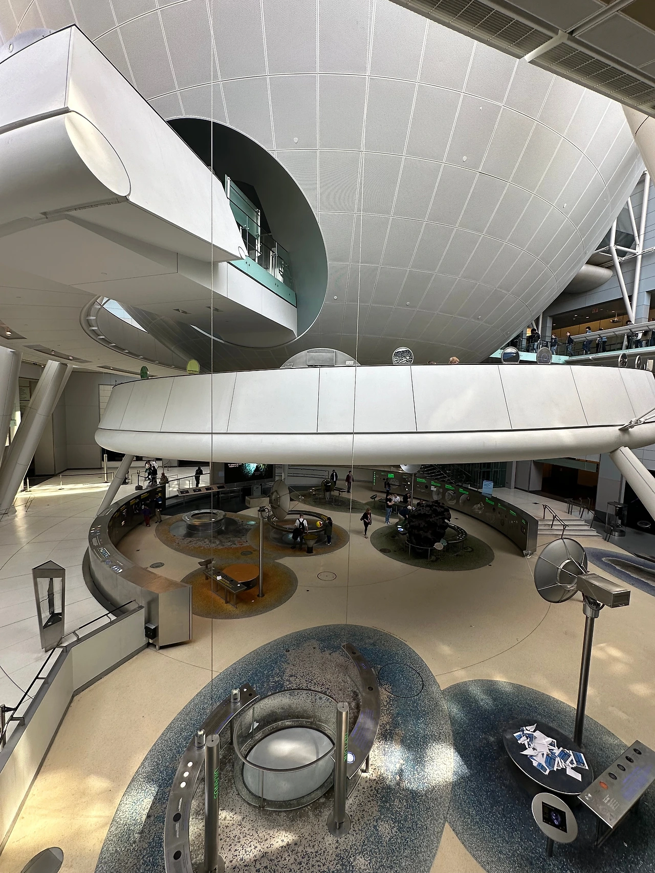 출입문 밖에서 아트리움 유리 안쪽이 보이는데 태양계 모형입니다. 과거 뉴욕 자연사박물관을 건립할 때 관장이던 닐 타이슨 박사가 과감하게 명왕성을 없애 버린 일화가 있습니다. 그때까지 유일하게 미국인이 발견한 태양계 행성인 명왕성이 없어서 계속 문의가 왔는데 닐 타이슨 박사는 명왕성은 행성의 정의에 맞지 않아서 뺐다는 입장을 계속 유지했죠. 2006년 8월 국제천문연맹(IAU)에서 명왕성이 퇴출되자 닐 타이슨이 그 원흉이라고 많이 비난했다고 하죠. 대중의 비난에도 과학적 소신을 굽히지 않은 닐 타이슨 박사와 삼체에서 홍위병의 협박에도 과학자의 양심을 버리지 않던 예저타이 교수가 겹쳐 보이네요.