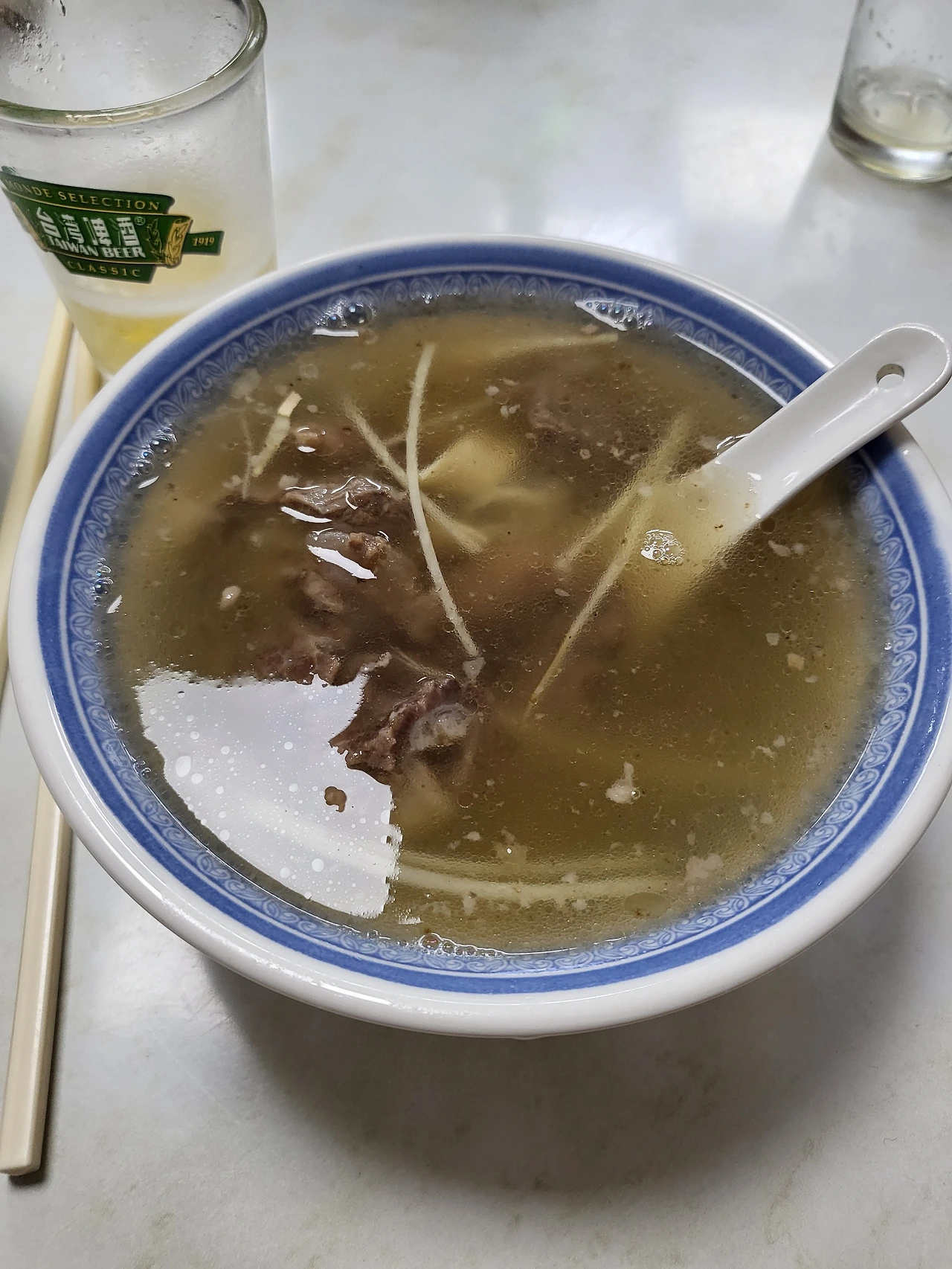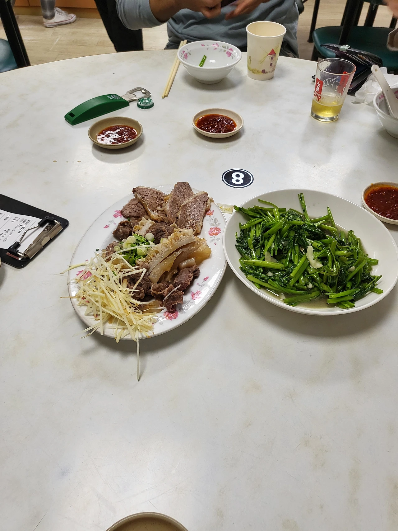 깔끔하게 맛있었던 국수와 고기, 공심채. 백년도 넘은 가게였다고 했던것같다.