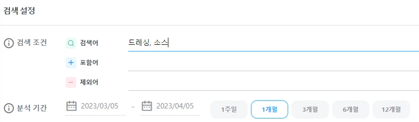 는 반드시 포함되어야 한다는 의미입니다. 예를 들어 포함어에 '맛집'을 넣으면, 드레싱과 소스에 대한 검색결과 중 맛집이 포함된 결과값만 받을 수 있습니다.