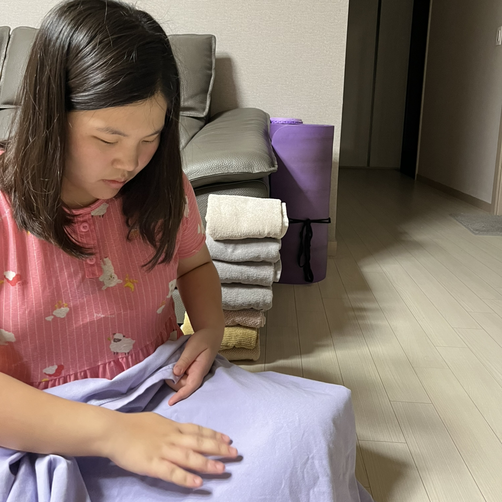 서영이는 수건 한 장이라도 설렁설렁 포개지 않았다. 반드시 수건을 쫙 펴서 손으로 양 끝을 탁탁 당긴 후에 개었다. 양 끝을 맞춰 두 번, 다시 반대편으로 말 듯이 접고 펄럭거리는 끝은 수건이 살짝 열린 곳으로 단정하게 쏙 말아 넣었다. 살림 빵점 엄마의 눈에는 죽었다 깨어나도 배울 수 있을 것 같지 않은 묘기였다. 운동복 바지도 손으로 한번 쫙 펴더니 앞섶을 접고 바지선을 맞춘 뒤 3등분으로 접었다. 티셔츠는 백화점 진열대에 올라간 그것처럼 깔끔하게 접혀 옷 주인의 방으로 배달되었다. 딸이 예쁘게 개어 준 옷 덕분에 우리 집 옷장 속은 백화점 진열대처럼 훤해졌다.