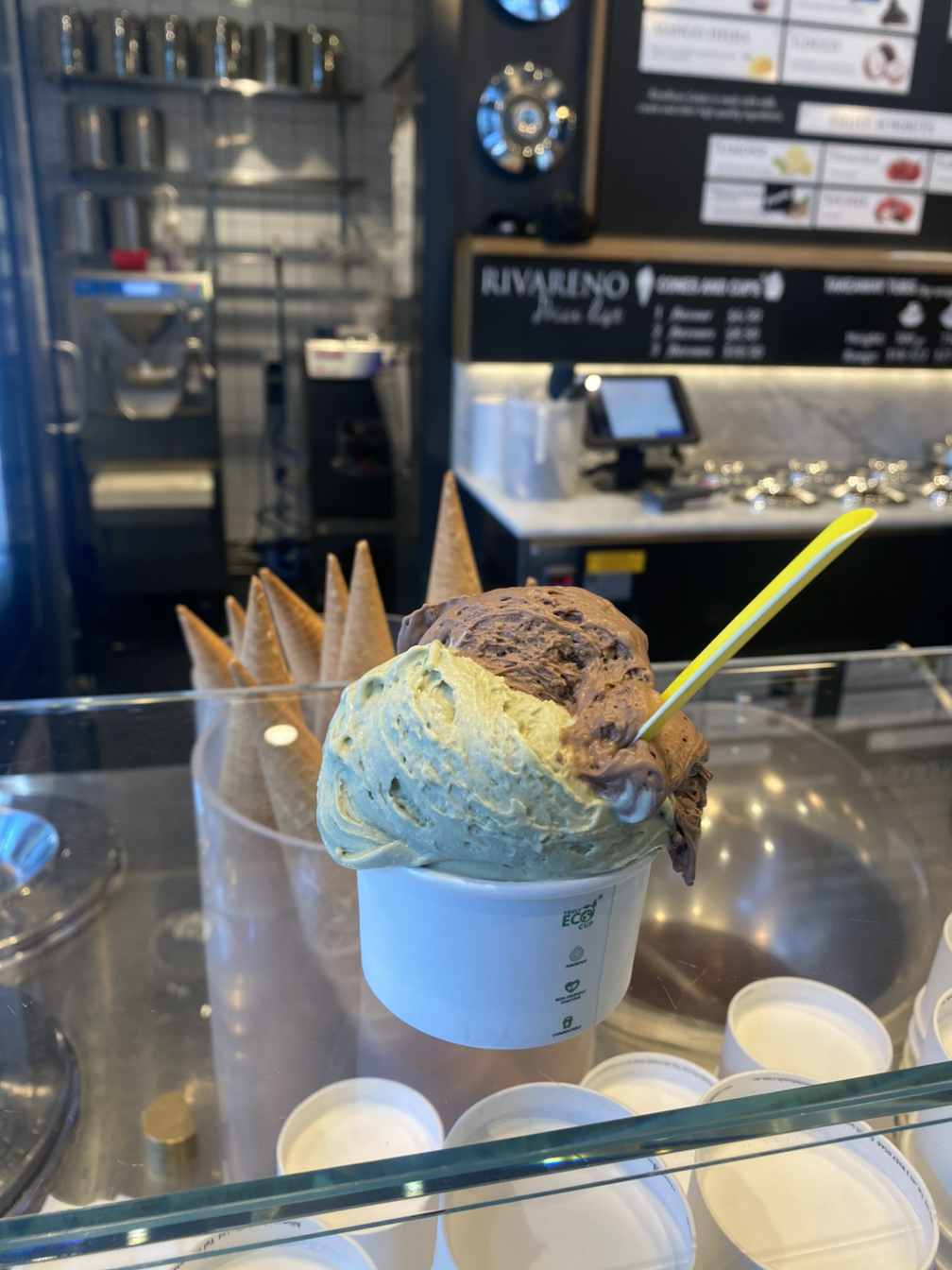 길거리를 거니는 데 가장 놀란 건 낮 시간인데도 카페가 문을 닫았다는 점이었다. 한국에서는 한창 커피가 당길 시간인데 호주 사람들은 이 시간에 커피를 먹지 않는다는 것인가? 찾아둔 카페들을 모두 가지 못하게 되었다는 것을 알고 낙심하던 찰나 젤라또 가게가 문을 열었다는 소식을 들었다. 수상택시 선착장이 있는 곳이었는데 주변이 거닐기에도 좋았고 앉을 곳이 많아서 바로 찾아갔다. 어김없이 가장 좋아하는 피스타치오 젤라또를 먹으며 걷다가 벤치에 앉았다.