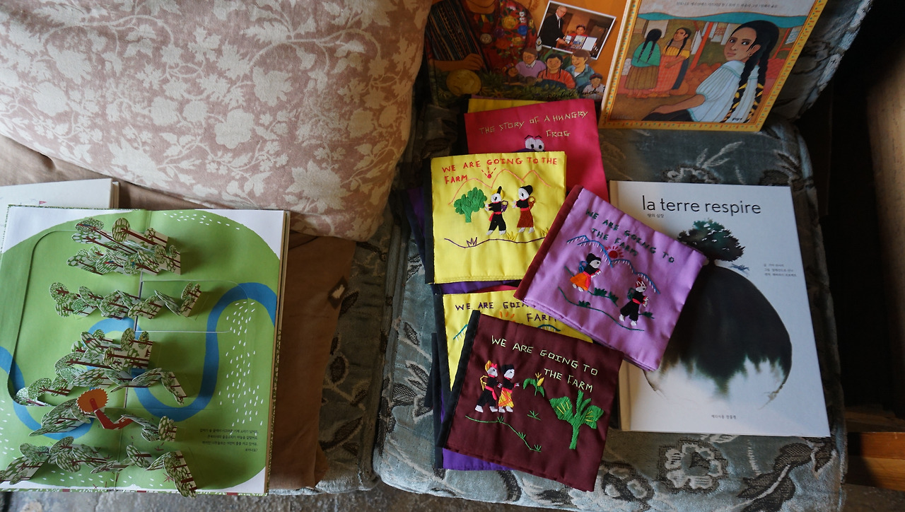 지난 '달빛서림' 방문에서는 라오스에서 공정무역으로 들여왔다는 손바느질 동화책을 구입했다. 몇 장 넘기면 끝나버려 선 자리에서 다 읽을 수 있었지만 의미 있어 두고두고 보고 싶었던 것이다.