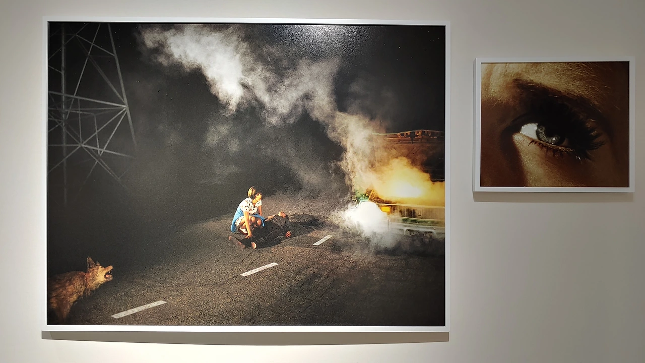《빅 웨스트》에도 화려한 화장과 복장을 한 여자들이 등장한다. 처음에는 헐리우드의 화려함 뒤에 숨은 공허함이라는 전형적인 주제로, 그러나 여성을 다시 대상화할 뿐인 그저그런 사진인가 하고 빠르게 지나갔다. 그런데 곰곰이 생각해보니 사진 작가 알렉스 프레거는 1979년생, 사진 속 모델들은 1950년대 복장을 하고 있었다. 철저히 연출된 사진이었던 것이다. 특히 군중 연작을 보면 수십 명의 모델/배우들을 캐스팅하고 분장해 디렉팅한 대작이라는 것을 알 수 있다. 영화의 스틸컷 같다고 생각했는데, 실제로 프레거는 "움직이는 사진"이라고 부르며 영화 작업도 했다고 한다. 이번 전시에서 그 중 두 편을 볼 수 있었다. 하나는 영화 산업과 놀이동산의 도시 LA에서 마주친 두 남녀가 서로의 시선 안에서 환상 속 인물이 되어가는 내용이었고, 또 하나는 무대 위 발레리나가 관객이 시선을 의식하는 내용이었다. 관객과 대중이 더 이상 관객으로서만 존재하지 않는 것이다.