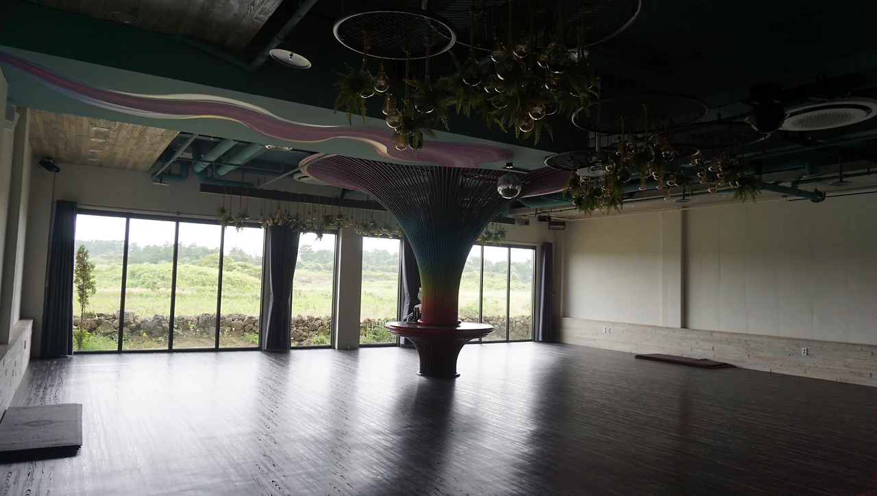 다실이 예쁜 것도 차를 즐기는 데 한몫을 했다. 바다를 향한 위층의 방들과 달리 지하의 창은 반대쪽 개발되지 않은 들판 쪽으로 나있었다. 바로 옆에 있는 명상 공간도 마찬가지였다. 다실에서는 각 방마다 작은 창으로 가꾸어놓은 정원을 볼 수 있다면, 명상 공간은 넓은 홀의 한 벽면이 모두 창이라 자연 그대로를 끌어오고 있었다. 자연 속에서 요가를 하는 건 동남아나 남미에서만 가능한 일인 줄 알았는데!
