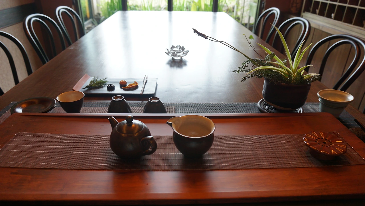방 안에도 차를 내려 마실 수 있게 다기가 준비되어 있어 있었다. 다기 테이블에는 바퀴가 달려 있어 자유자재로 움직일 수 있었다. 침대 맡으로 가지고 와 때로는 침대에 기대어 책을 읽으며, 때로는 테이블을 책상 삼아 글을 쓰면서 차를 우려 마셨다.