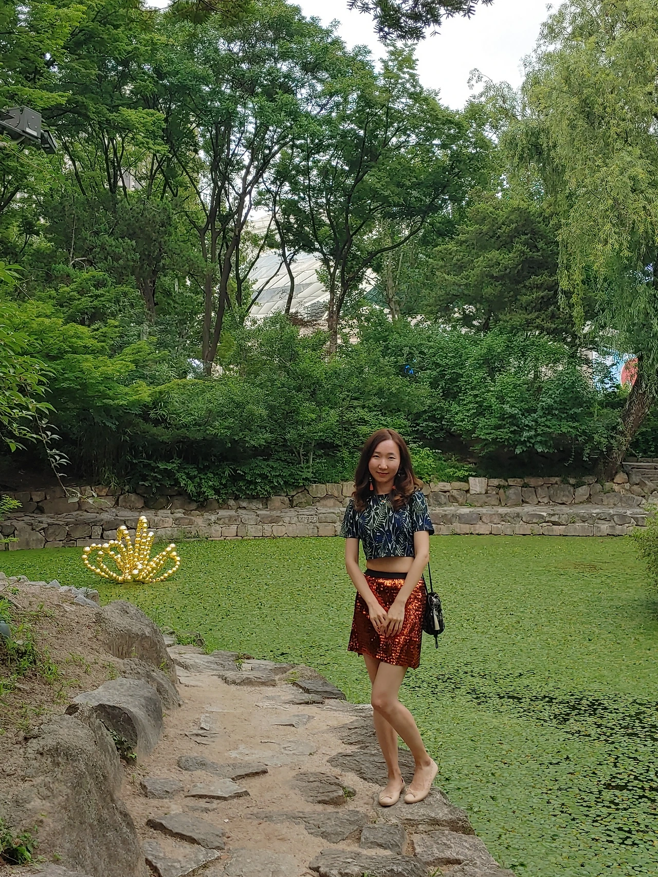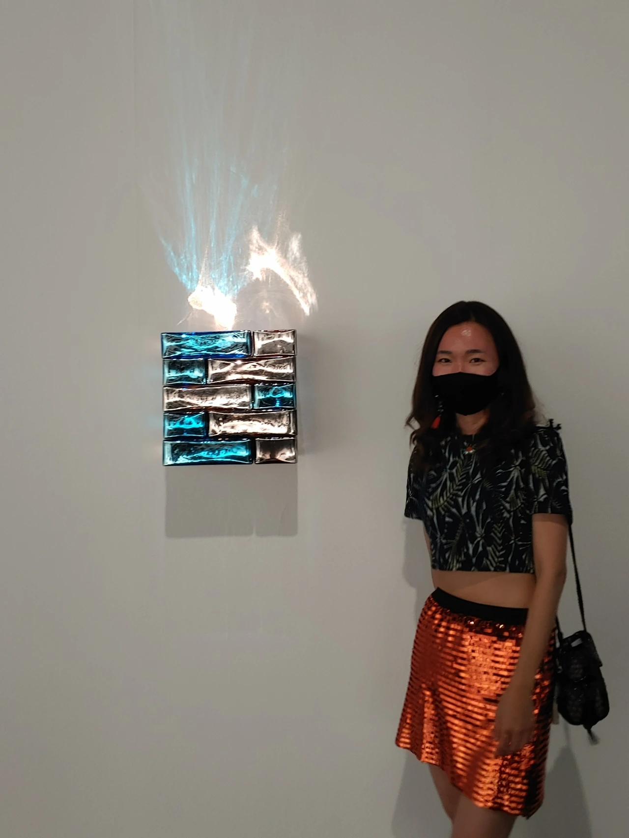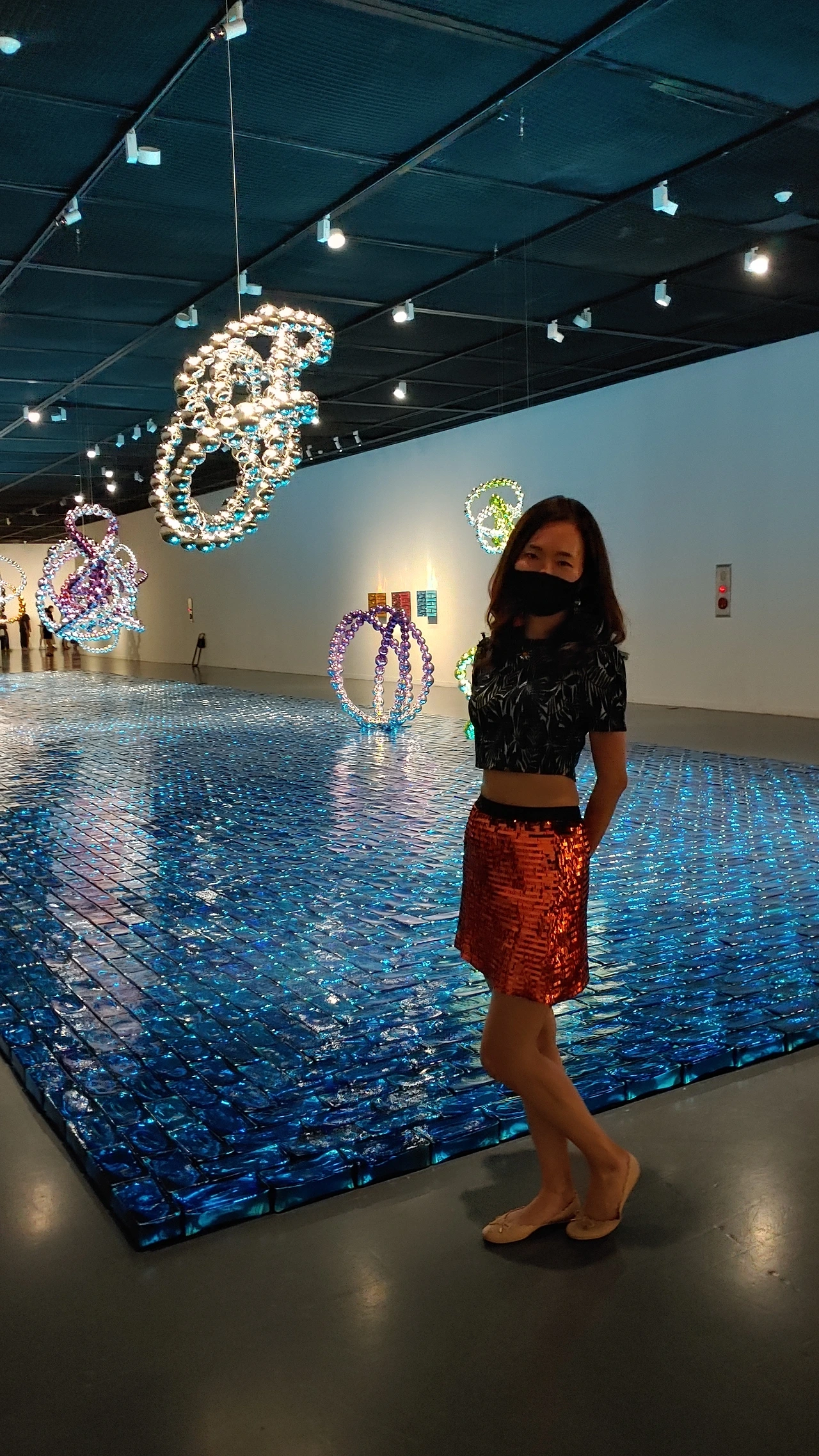 유리벽돌 작품 사진들을 보고 그에 맞춰 스팽글 스커트를 입고 갔다.