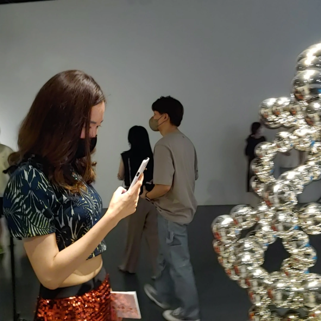그리고 사람이 너무 많아 작품을 제대로 찍지는 못했지만 수학 기호를 형상화했다는 <거울 매듭> 연작. 시작과 끝이 어디일까 들여다보다 반사되는 무수한 나의 이미지와 함께 무한에 빠져들게 되었다.