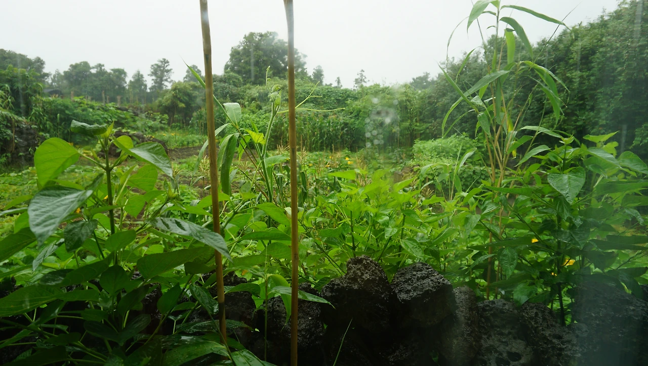제주도에 있는 일주일 중 이틀 동안 비가 왔다. 새로운 숙소 '독채민박 초'에 도착해 샤워를 마치고 나오자 뒷 정원에 비가 토독토독 떨어지고 있었다. 에어컨을 끄고 창문을 열어 그 소리를 들으며 그날 산 『여름 밤, 비 냄새』를 마저 읽었다.