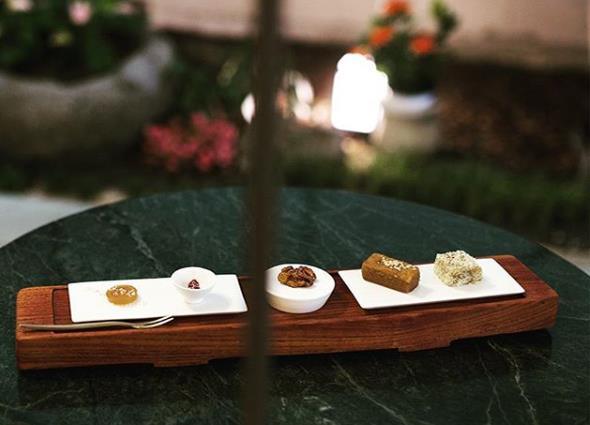 그중 이곳의 다채로운 맛을 한 번에 가장 많이 느낄 수 있는 큰 소반차림을 보면 한국 사람들조차도 낯선 전통 디저트들이 다양하게 놓여있습니다. 매작과와 같이 상대적으로 익숙한 디저트들과 함께 설명을 듣지 않으면 잘 모르는 떡과 전통병과들이 마치 하나의 잘 그려진 그림을 보듯 합니다. 대추, 잣, 곶감, 콩, 팥, 쌀, 수삼, 오미자, 더덕 등 우리의 식재료로 만든 잘 디자인된 디저트 한 상을 받고 나면, 그 정성과 섬세함에 그동안 조금은 터부시 했던 전통 디저트를 다시 생각하게 됩니다.