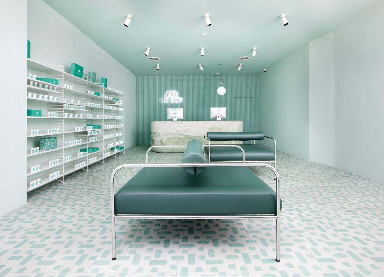 이러한 'Medly'는 이름뿐 아니라 싱그럽고 기분 좋은 민트 컬러와 세련되고 모던한 공간, BI 디자인으로도 이미 많은 디자인 잡지와 관련 매체들의 주목을 받아왔습니다. 대부분의 사람들에게 그리 유쾌하지만은 않은 공간인 약국이란 곳에 생기를 불어넣는 감성 브랜딩 (Emotional Branding)과 디자인 전략을 적극 적용하고 있지요.